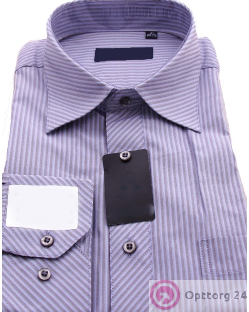 Сорочка мужская с длинным рукавом сиреневая в узкую полоску оптом