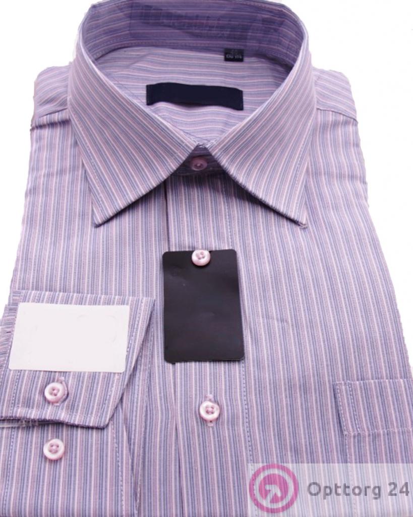 Сорочка мужская с длинным рукавом сиренево-синяя в полоску оптом