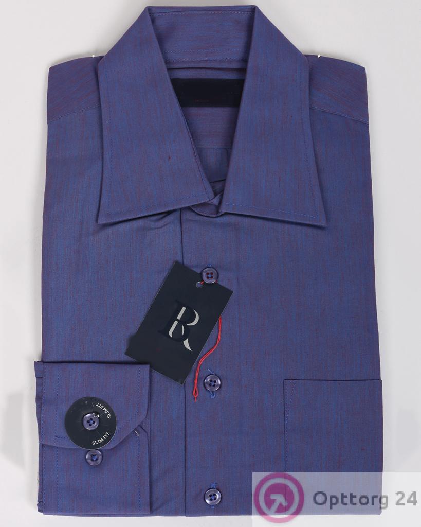 Сорочка мужская с длинным рукавом темно-синяя оптом