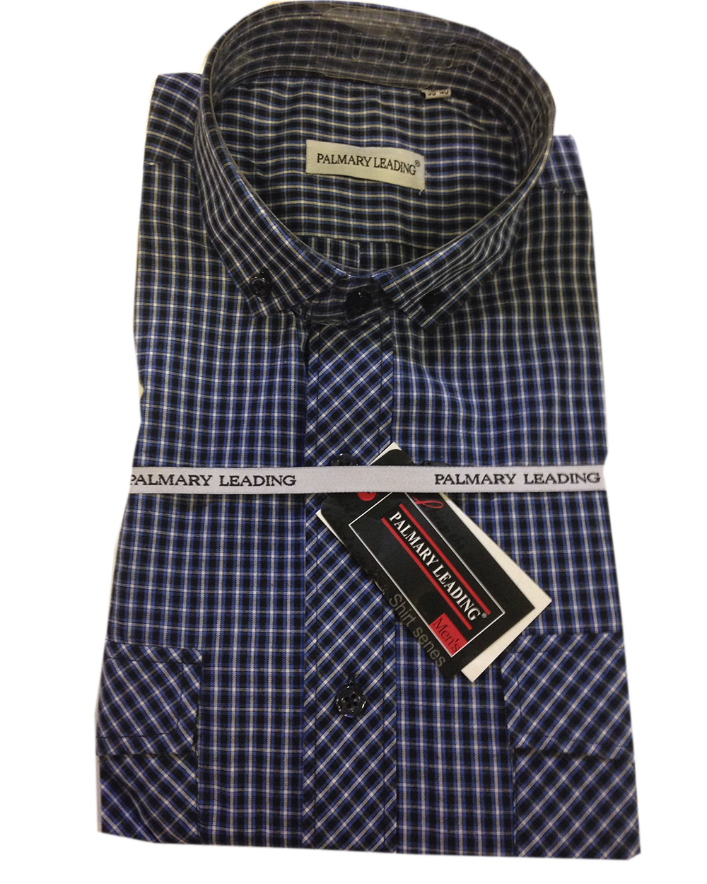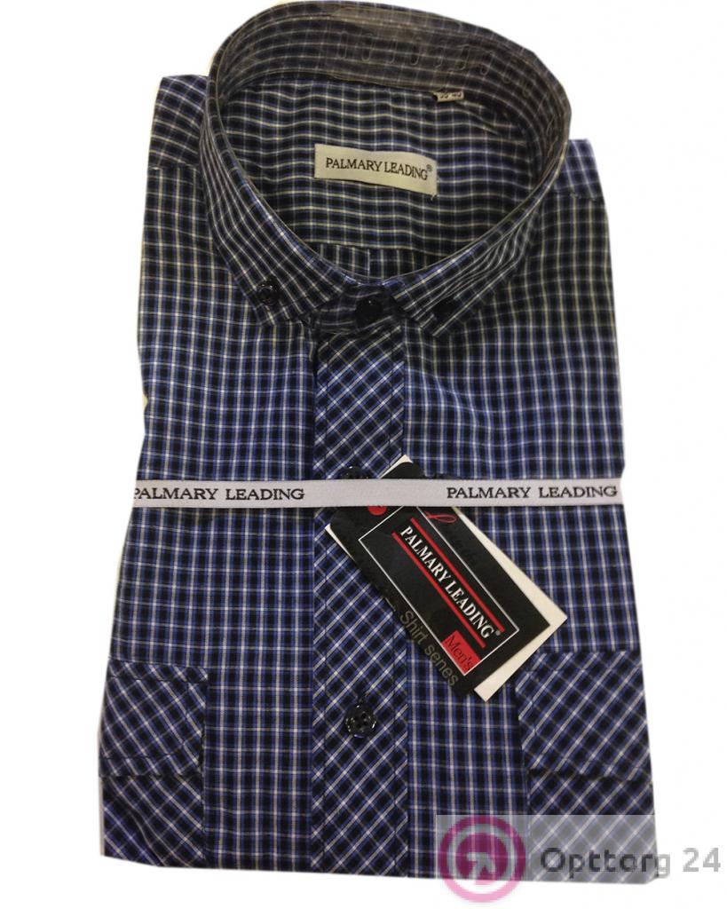 Сорочка мужская синего цвета в белую клетку оптом