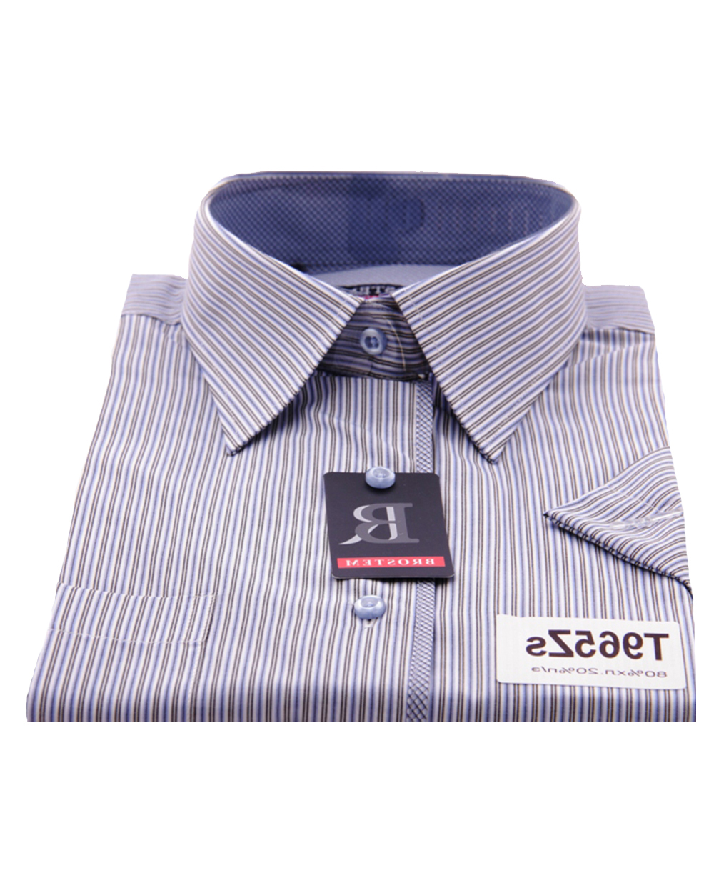 Рубашка с коротким рукавом в синюю и черную полоску внесет разнообразие в классический мужской гардероб. Выполненная из натурального материала, она идеально сидит на теле.