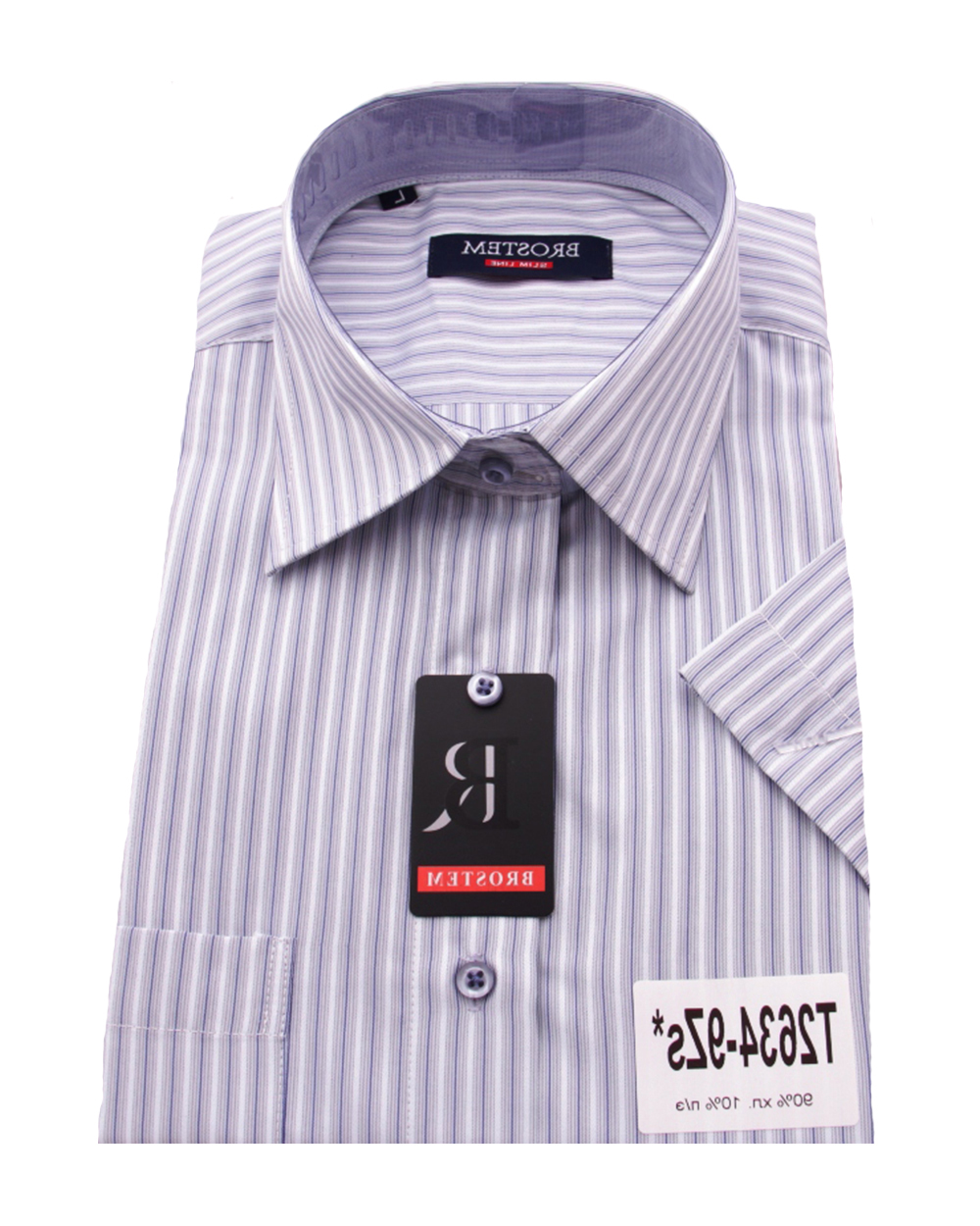 Легкая летняя рубашка с коротким рукавом мякого сиреневого цвета с белыми и синими полосками внесет разнообразие в мужской гардероб. Выполненная из натурального материала, она приятная для тела.