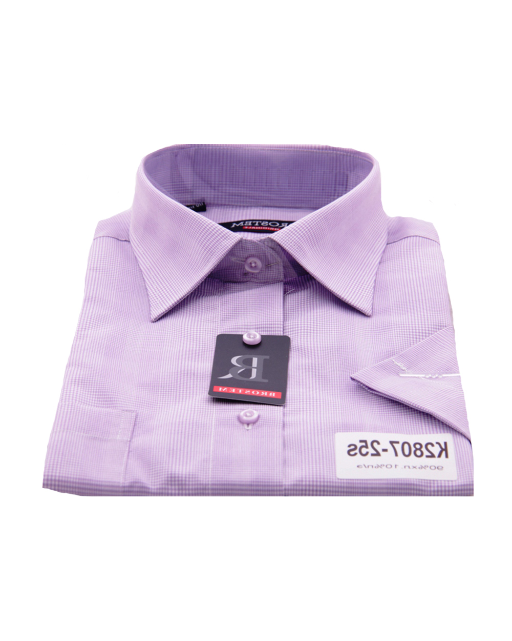 Стильная рубашка сиреневого цвета с коротким рукавом станет отличным дополнением к гардеробу делового мужчины. Ее можно комбинировать как с джинсами, так и с брюками.