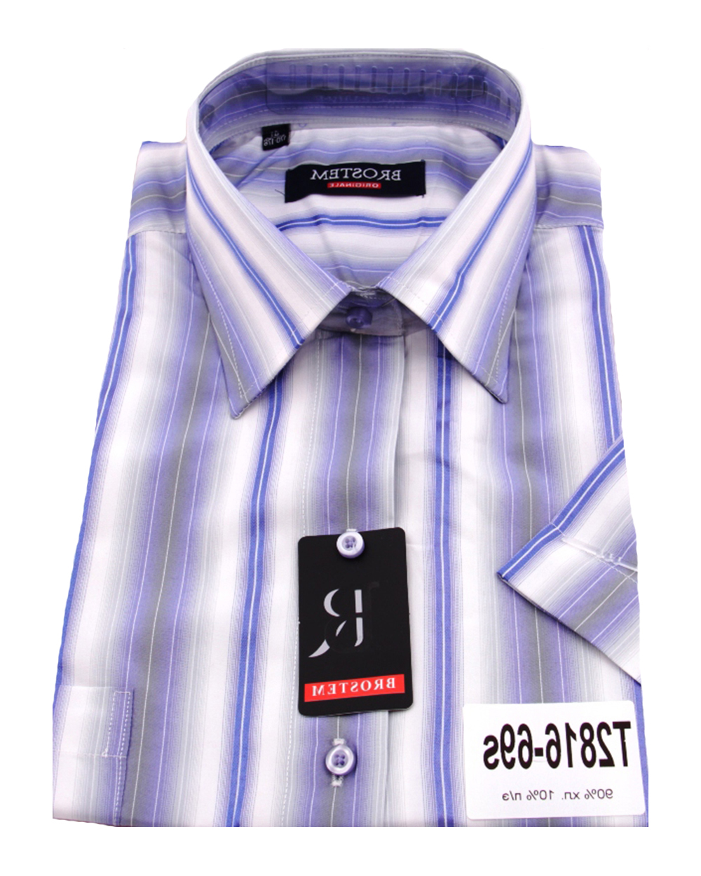 Стильная рубашка мягково фиолетового цвета в белую полоску отлично дополнит гардероб делового мужчины. Модель выполненная из натурального материала и приятна для тела.