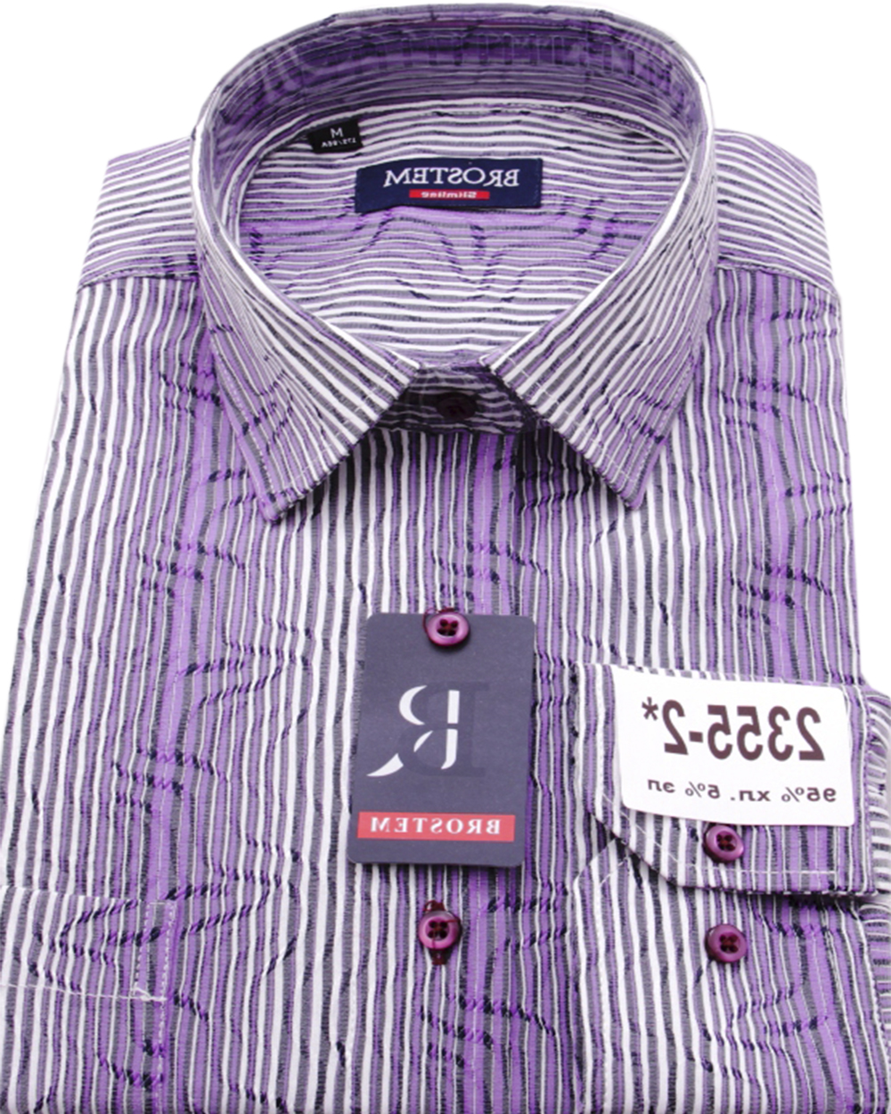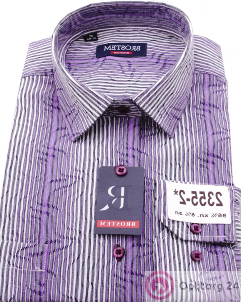 Сорочка мужская в белую и фиолетовую полоску оптом