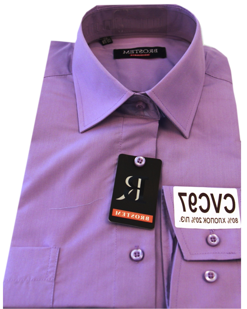 Сорочка мужская ярко фиодетового цвета с длинным рукавом CVC97 оптом