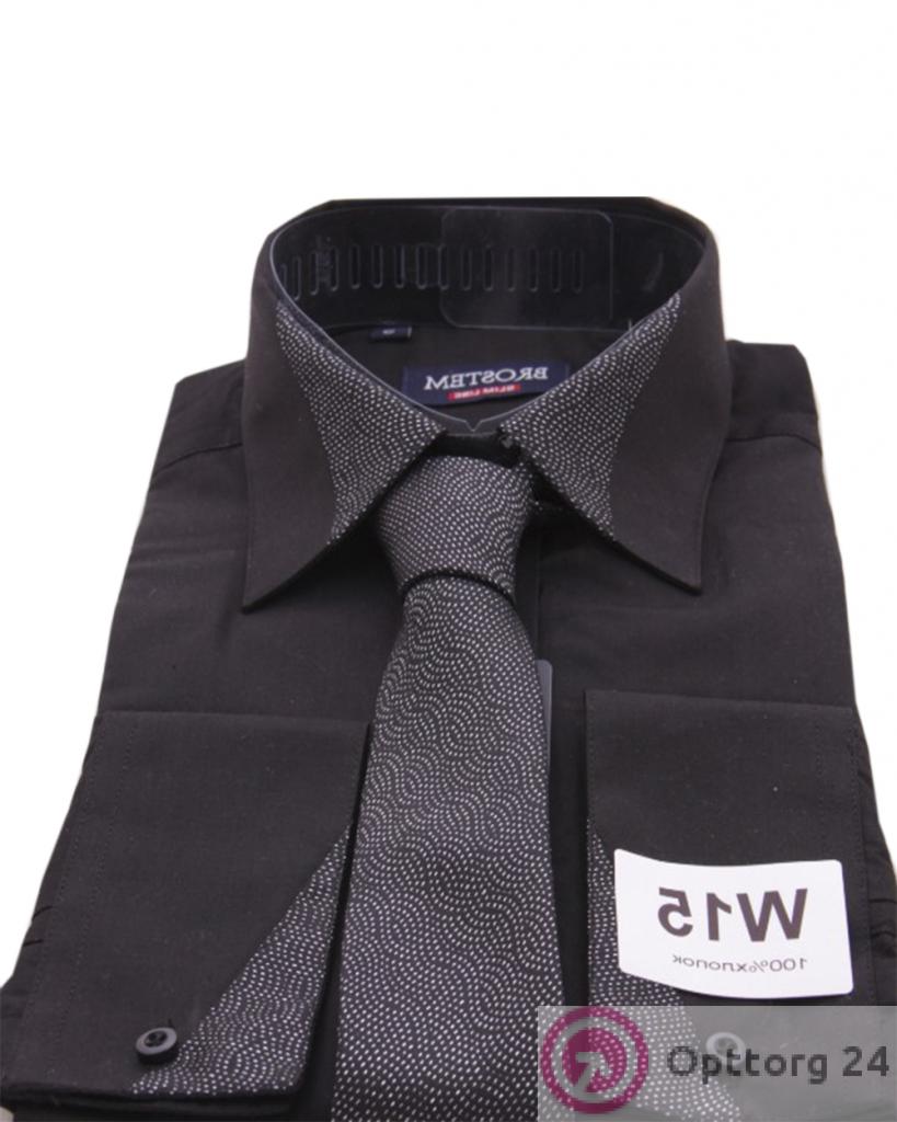 Классическая мужская рубашка с длинным рукавом, жестким воротничком и галстуком в комплекте. Манжеты и воротник украшены оригинальным принто в цвет галстуку.