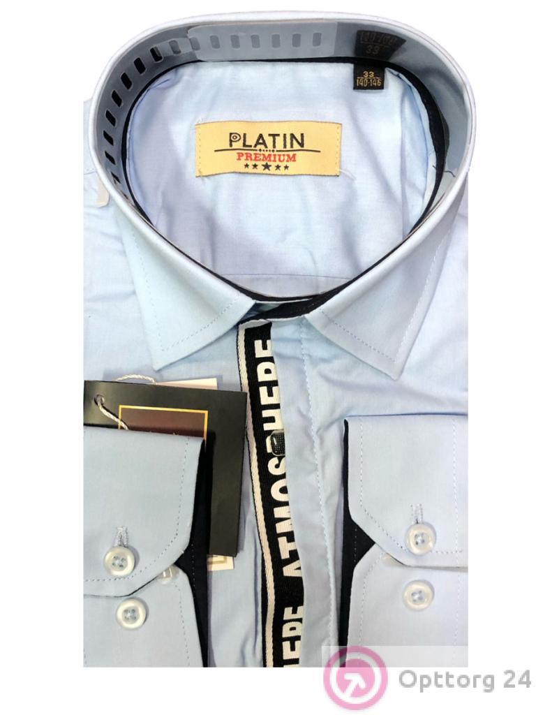 Стильная мужская рубашка классическая голубая на кнопках из хлопка Platin оптом