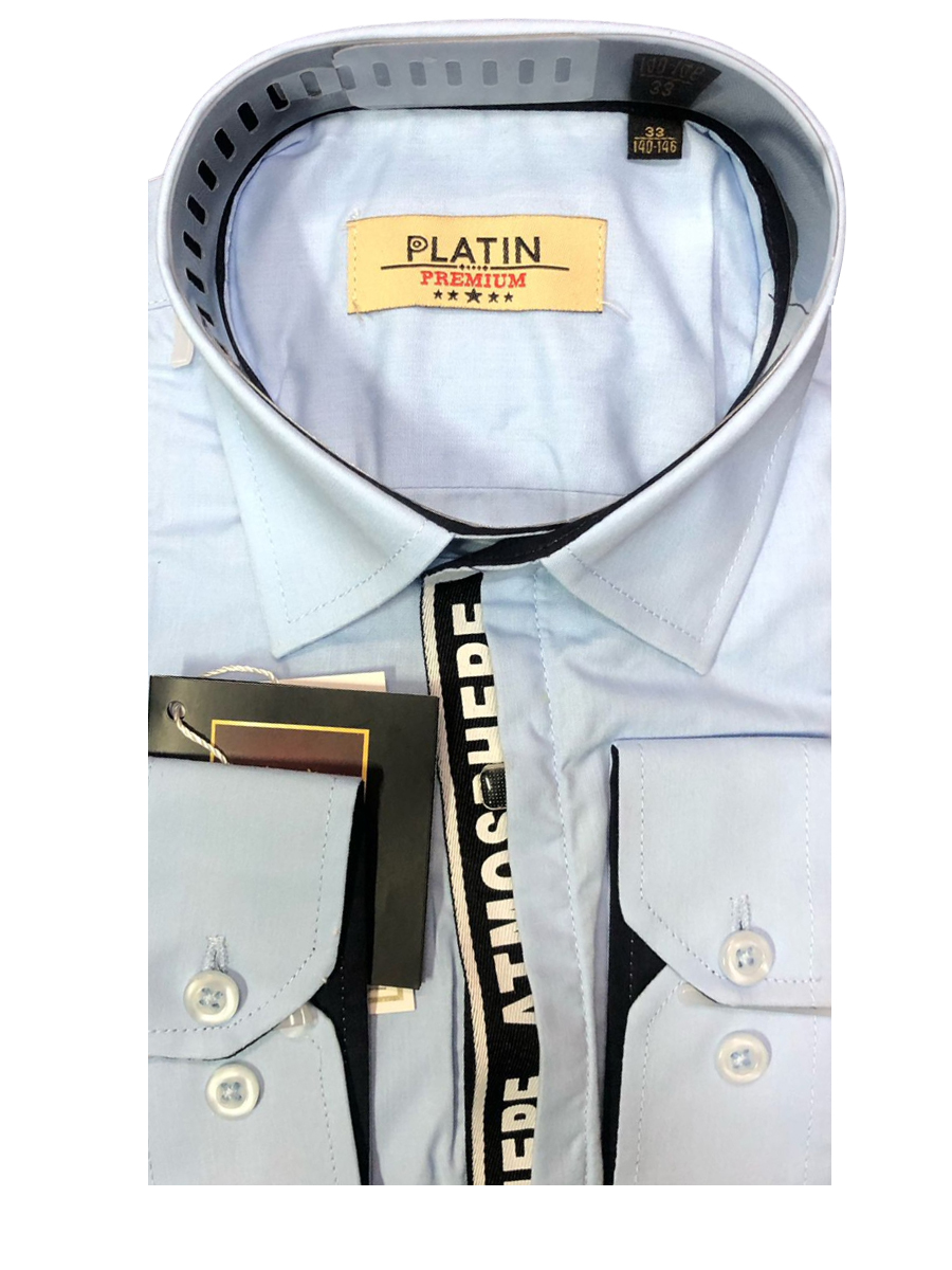Описание: Рубашка мужская классическая Platin, прямого кроя, оригинальный современный дизайн, свело-голубая с черной отделкой, на кнопках с длинным рукавом.