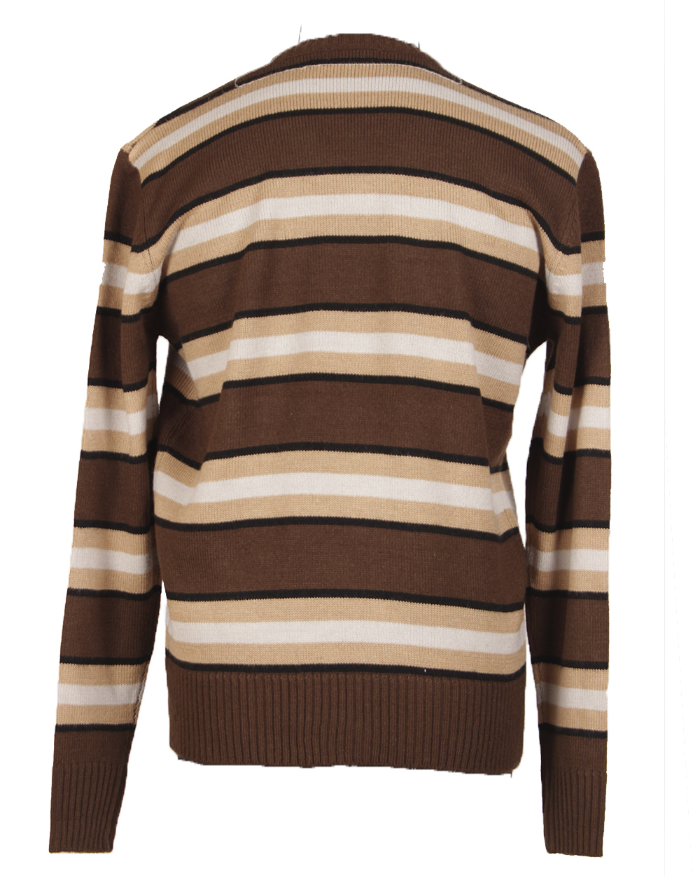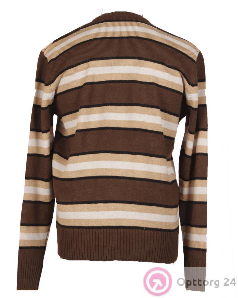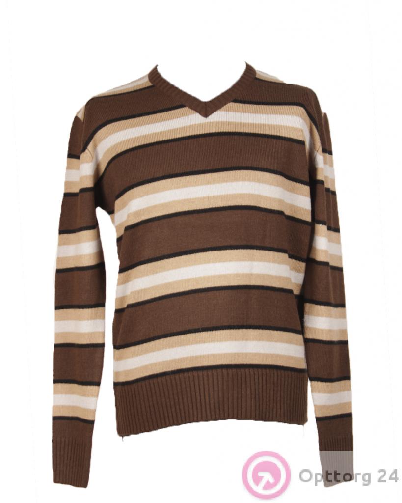 Мужской джемпер бежевого цвета с коричневыми, горизонтальными полосками, хорошо сочитается с джинсами. Стили и цвета в асортименте.