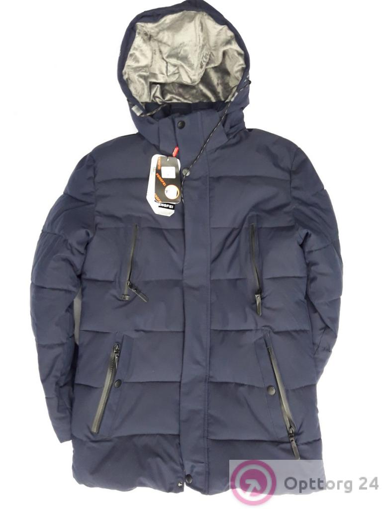 Пуховик для мужчин темно-синий с капюшоном оптом