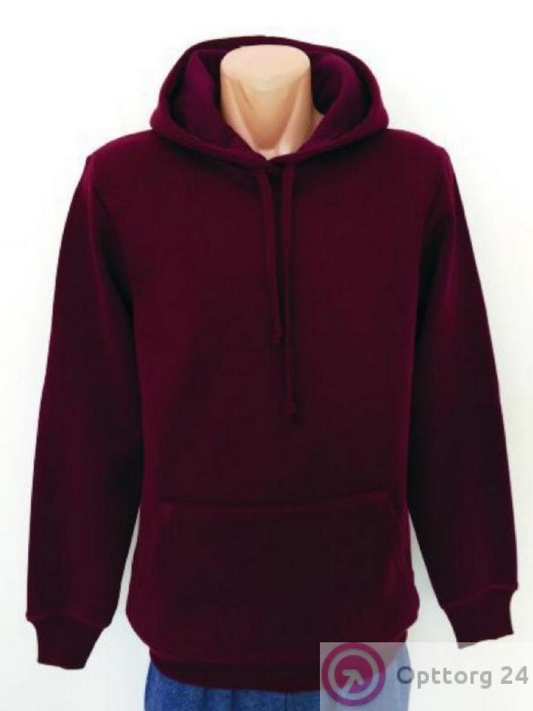 Мужская стильная толстовка бордового цвета с длинными рукавами. Изделие имеет карманы и капюшон.