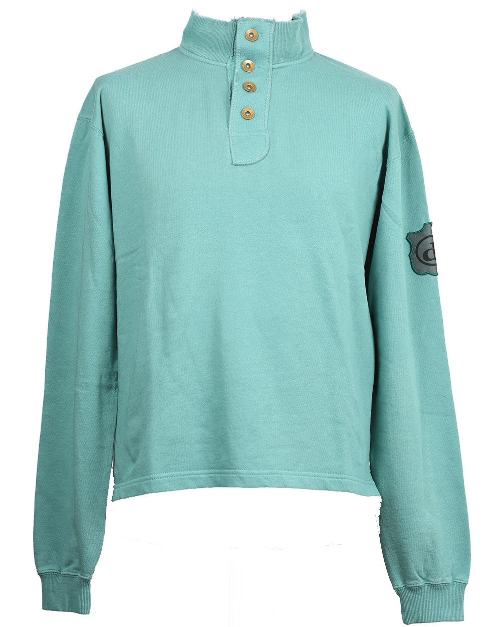 Толстовка с длинным рукавом прекрасно подойдет как для холодного времени года, так и для теплого. Короткая застежка на пуговицах делает модель удобной и многофункциональной, а приятный небесный цвет придает оригинальности.