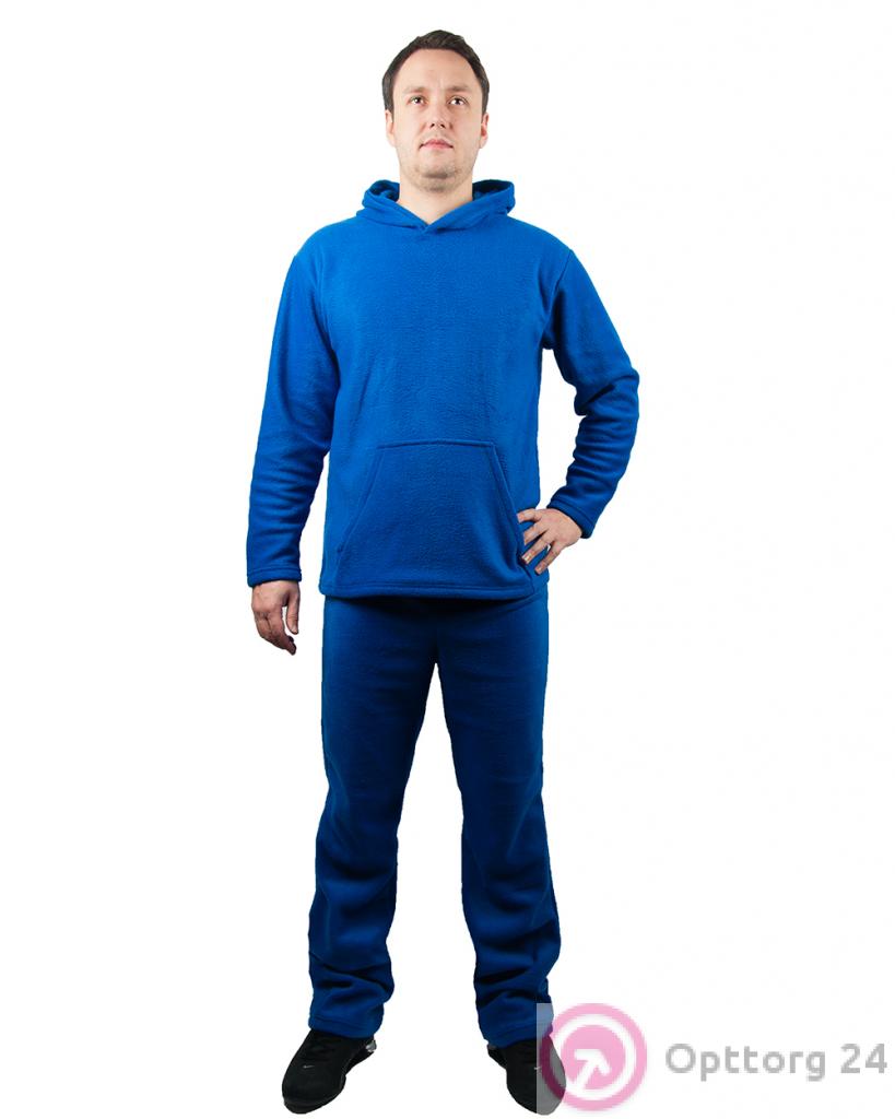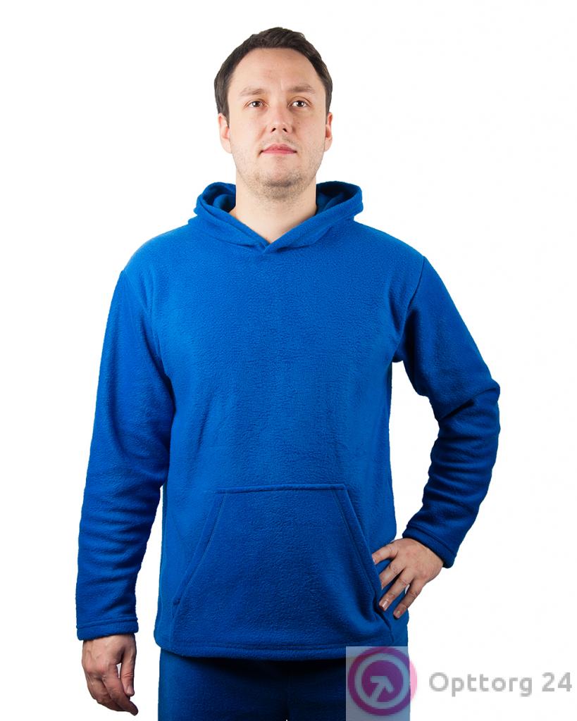 Толстовка мужская из флиса с капюшоном синий (большой размер) оптом