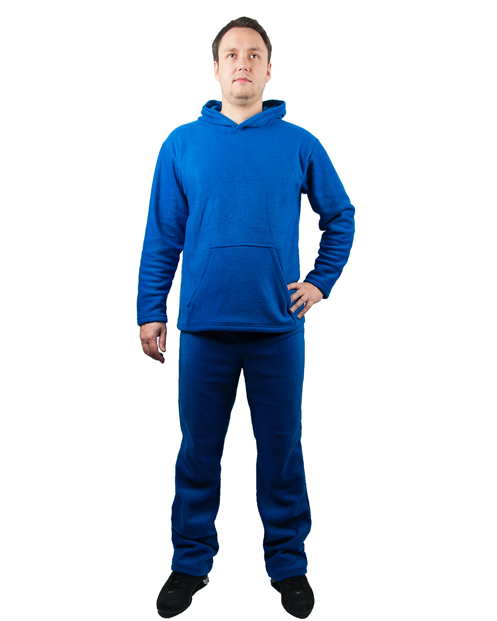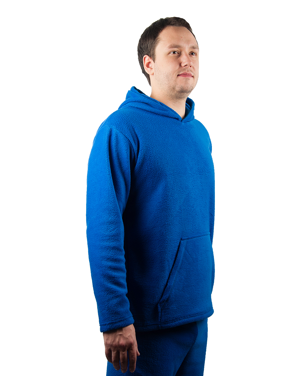 Синяя толстовка из флиса прекрасно комбинируется со спортивными штанами и обычными джинсами. В ней будет удобно и комфортно каждый день. Модель имеет просторный капюшон и большой карман-муфту.