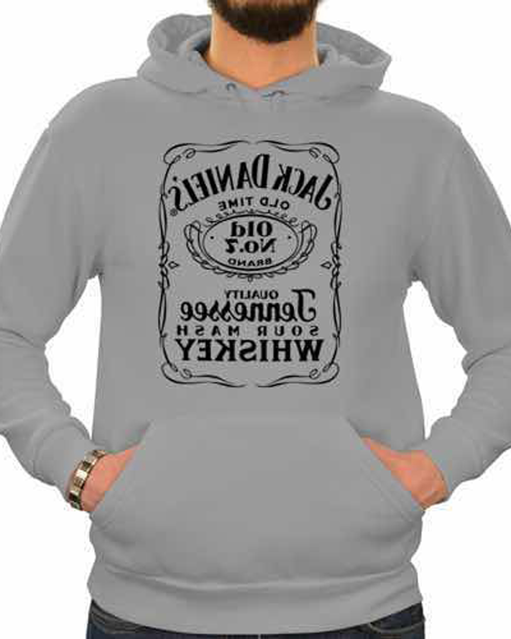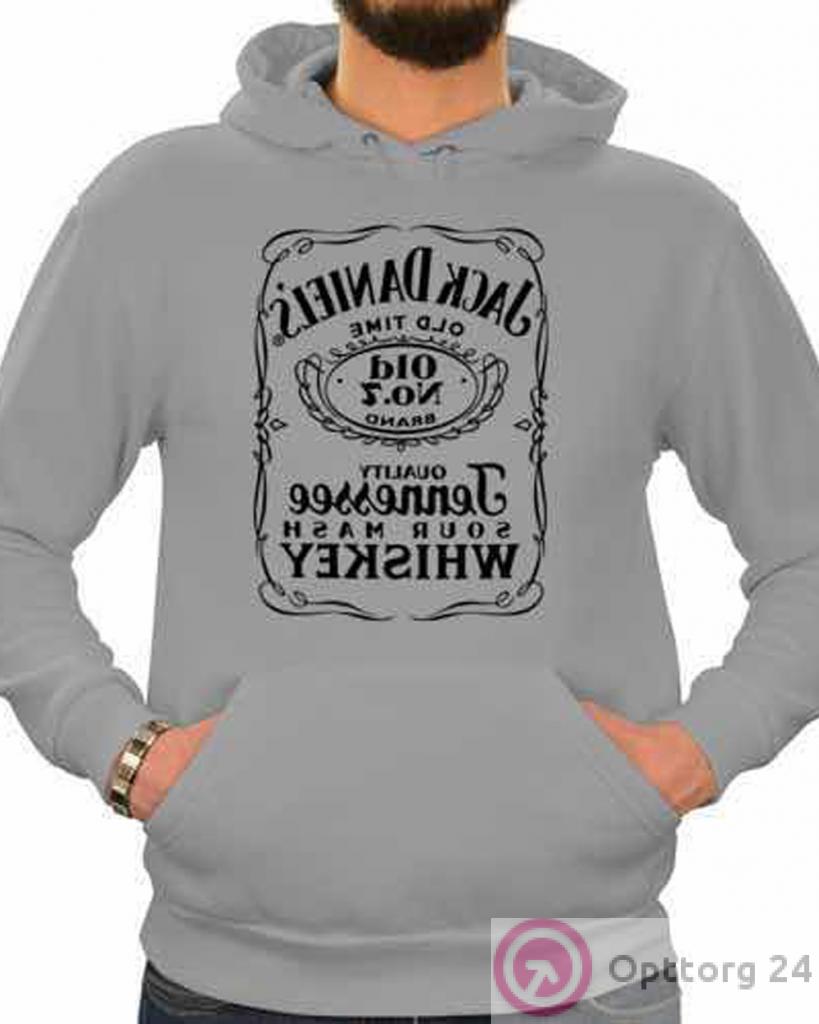 Стильная толстовка с капюшоном, выполнена из качественной ткани серого цвета. Спереди на кофте нанесен принт с надписью Jack Daniels и глубокие карманы-кенкуру. Очень комфортная и теплая толстовка.