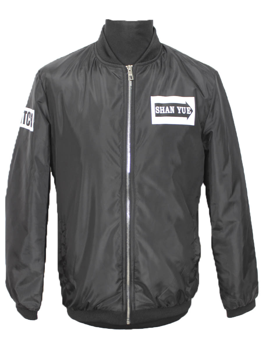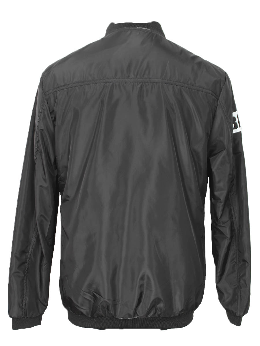 Мужская ветровка черного цвета модель на молнии с нашивкой в области груди.