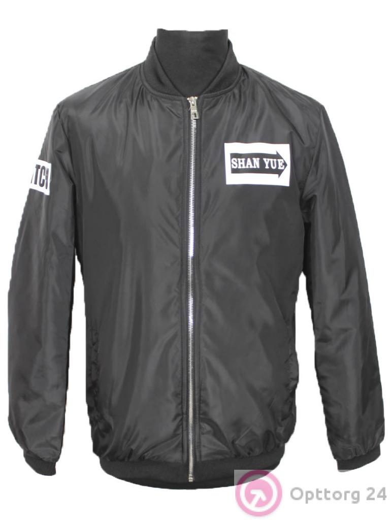 Ветровка мужская черного цвета с нашивкой на груди изделия. оптом