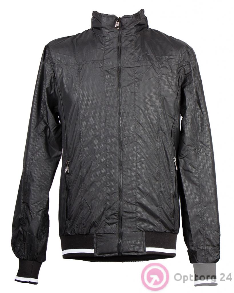 Ветровка мужская чёрная с тремя полосками на резинках оптом