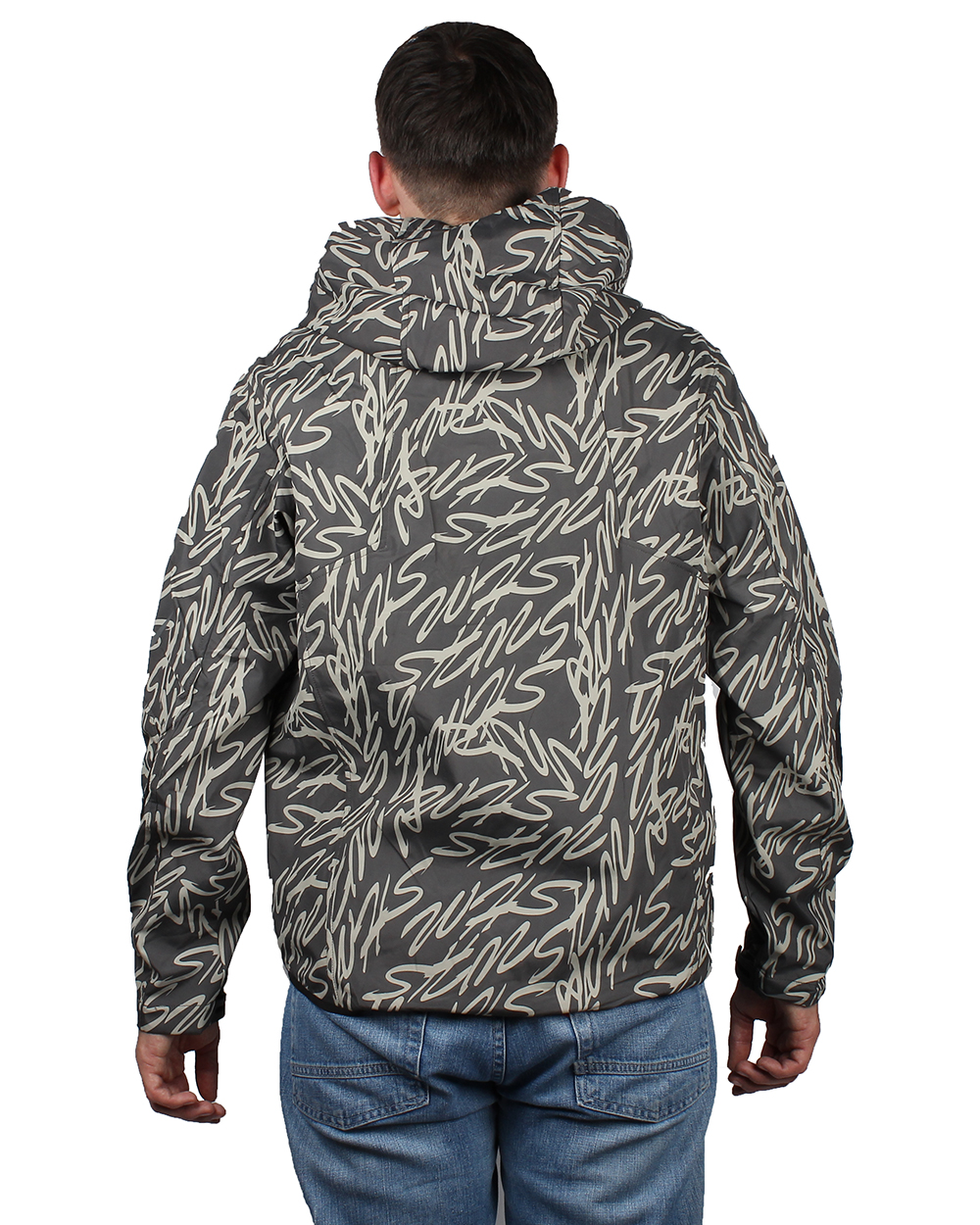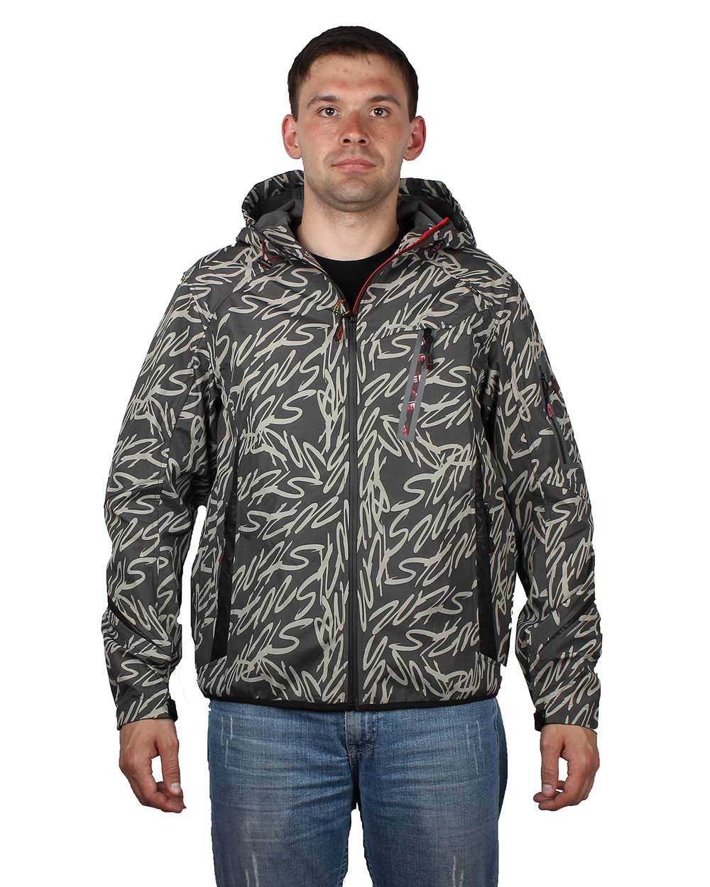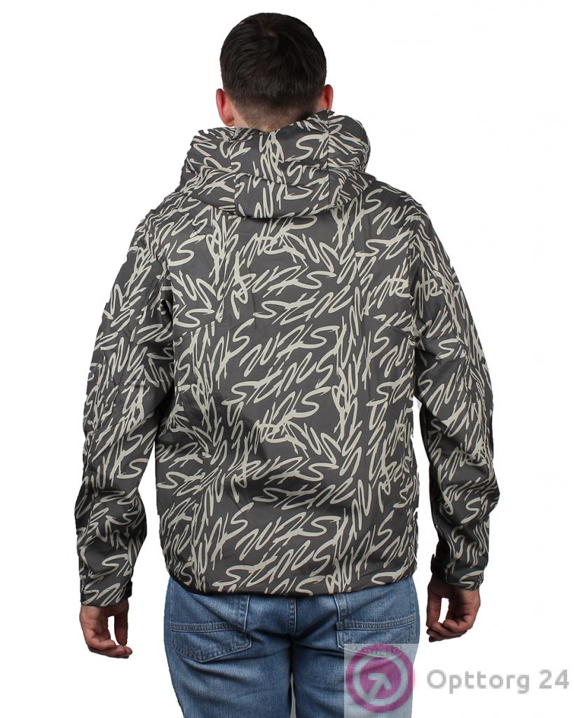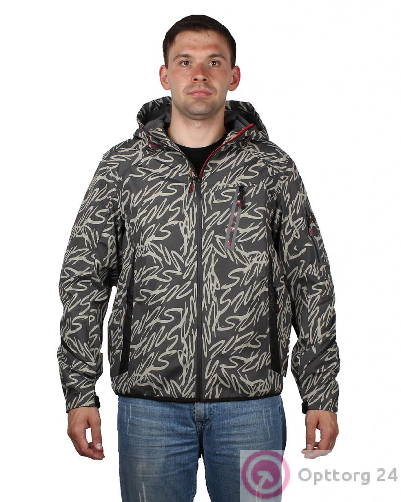 Ветровка мужская тёмно-серая с буквенным принтом оптом