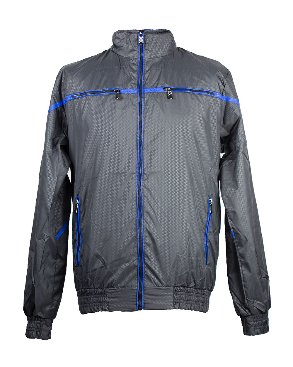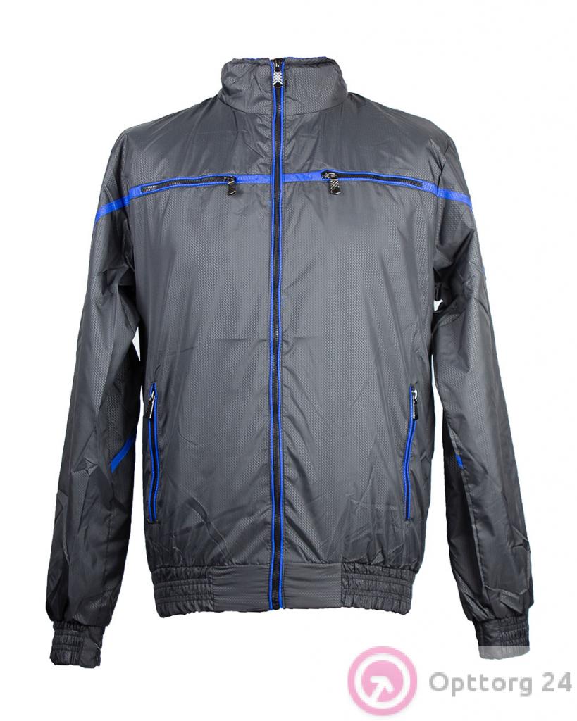 Ветровка мужская тёмно-серого цвета с синим кантом оптом
