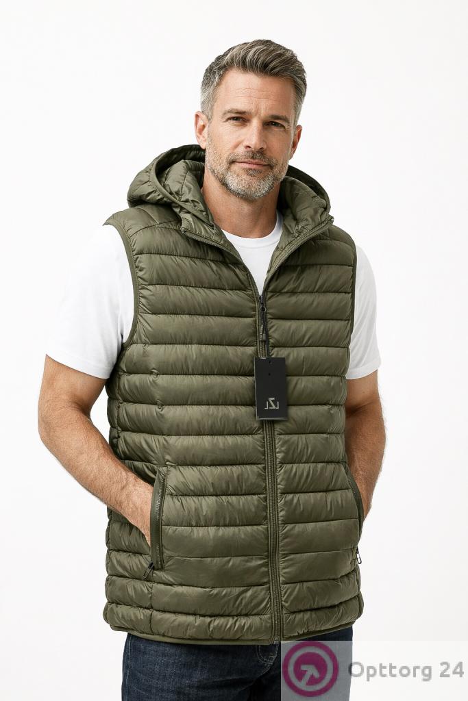Жилет мужской стеганный на синтепоне с капюшоном оптом