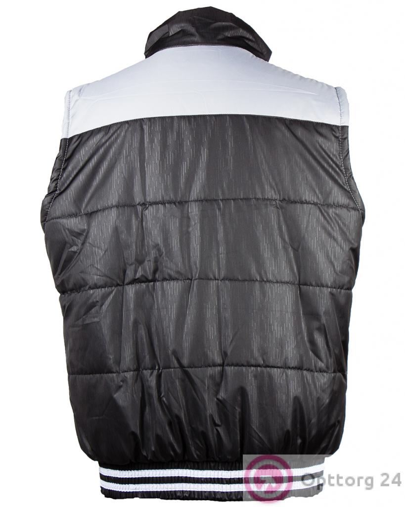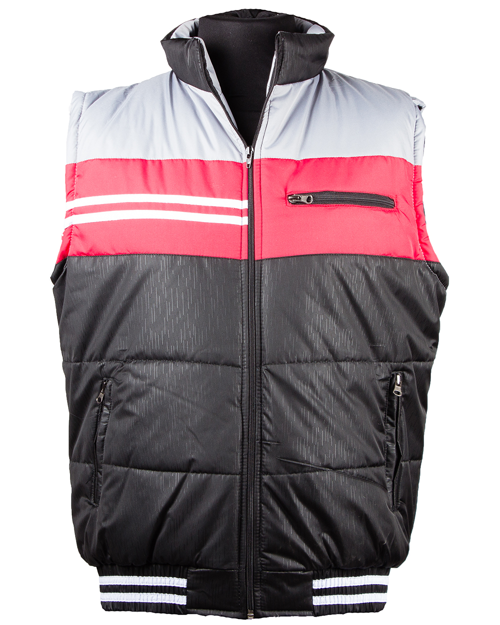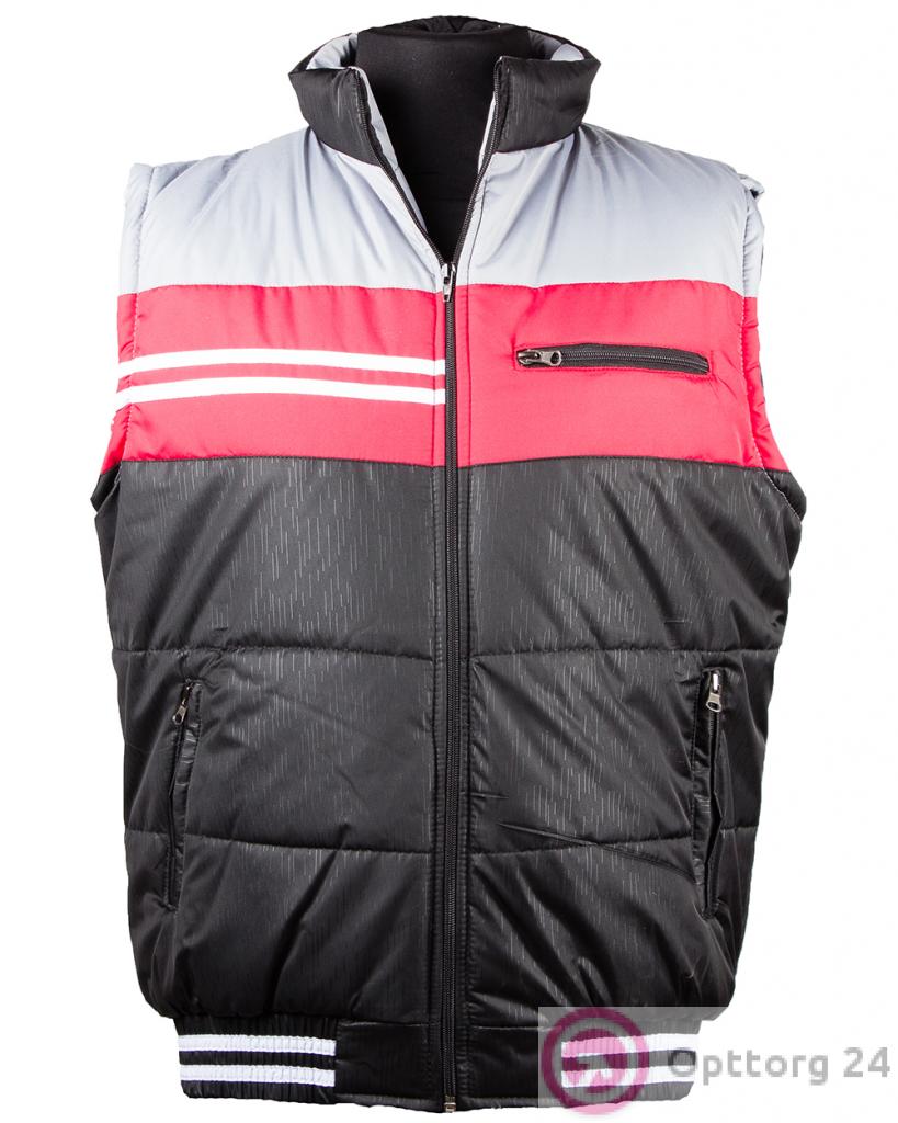 Жилетка мужская чёрно-серая с красной вставкой и полосками оптом