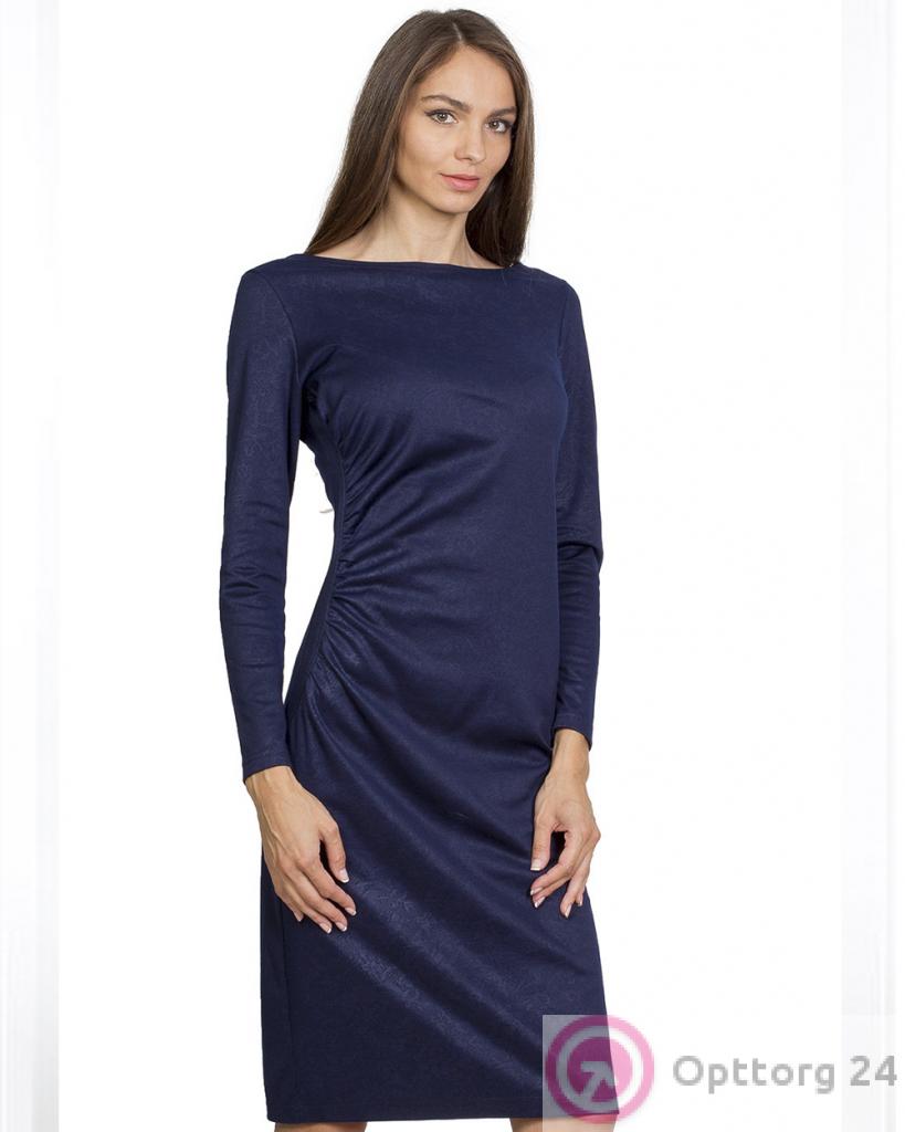 Асимметричное прямое платье тёмно-синего цвета. оптом