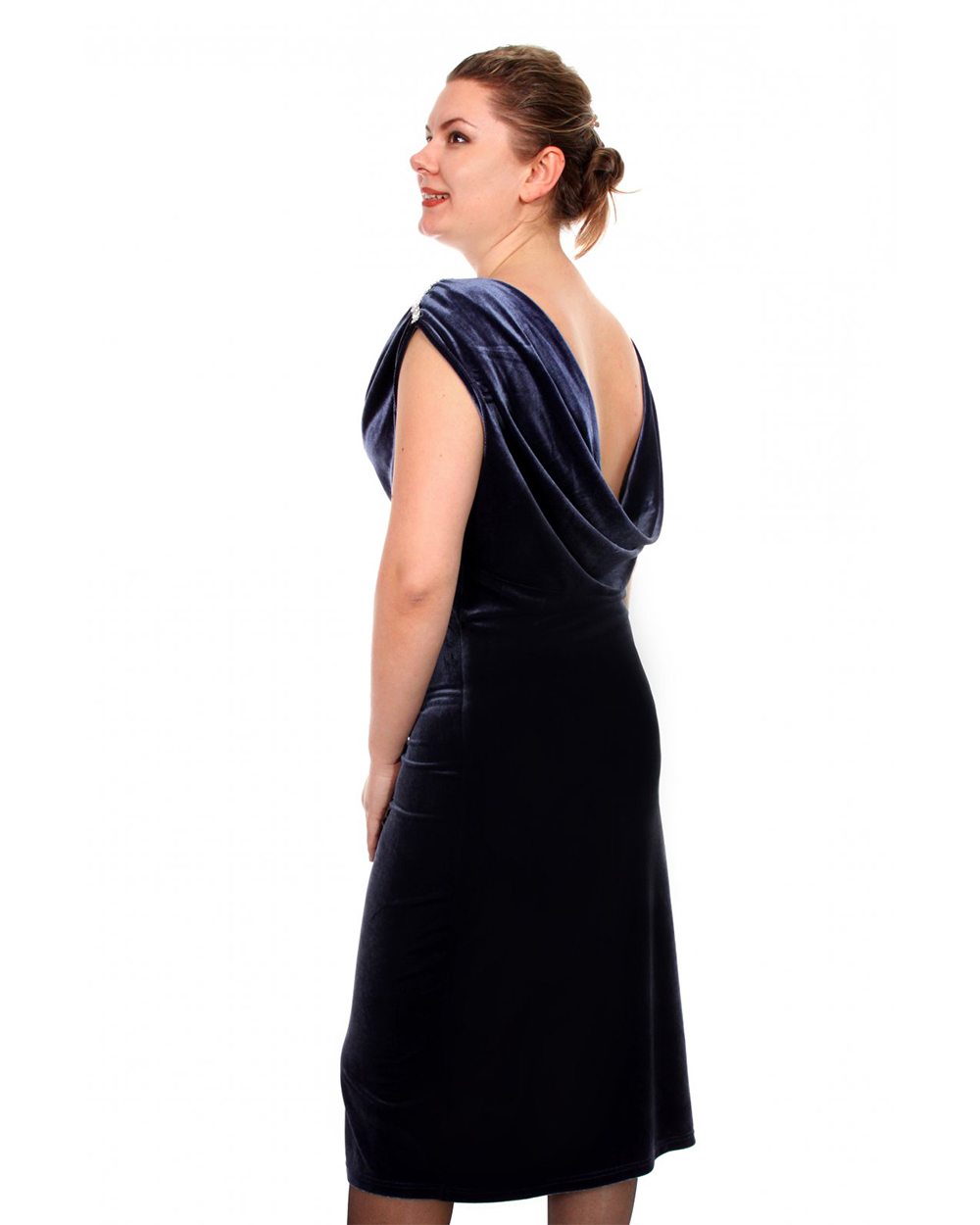 Облегающее платье из бархатной ткани. Бретельки украшены полоской из мелких камней.