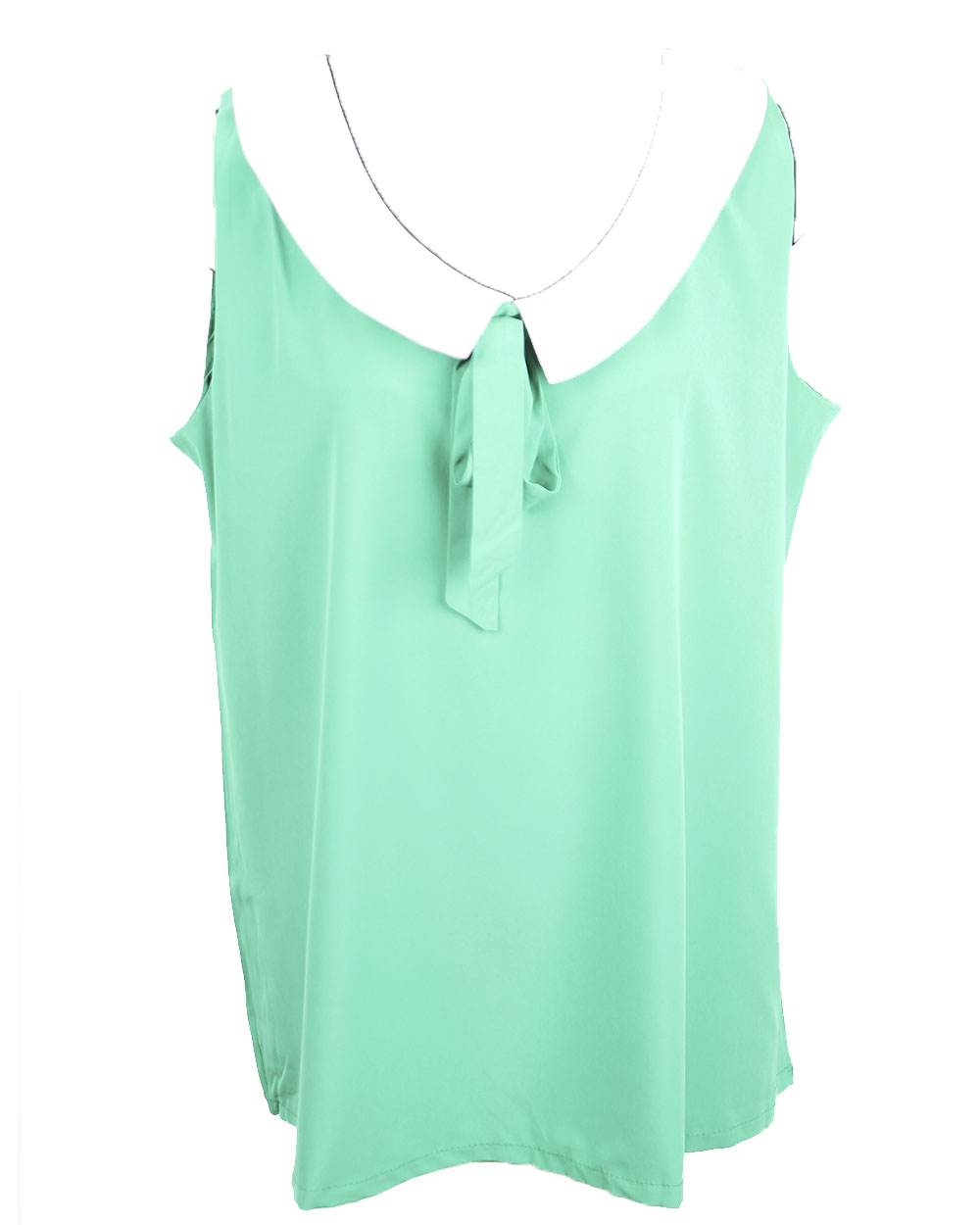 Женская блуза с завязками бирюзового цвета с белым воротником.