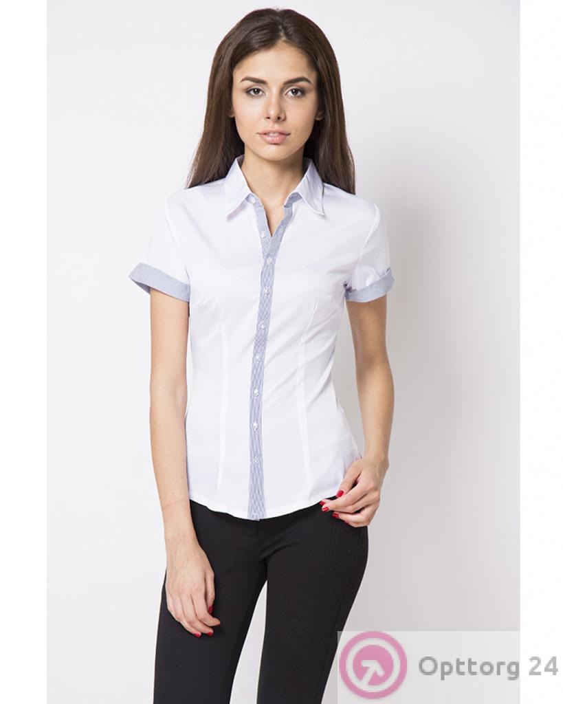 Классическая облегающая блузка из хлопка с добавлением эластана. Классический белый цвет украшает синяя окантовка.