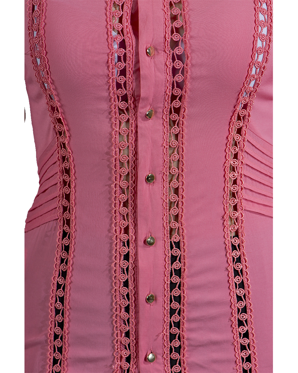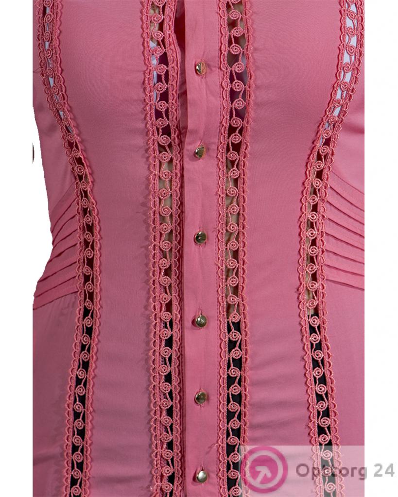 Нарядная и очень красивая модель с нежной мережкой. Приятная на ощупь ткань, приталенная модель и нежный сетчастый рисунок сделают блузку любимой вещью в вашем гардеробе.