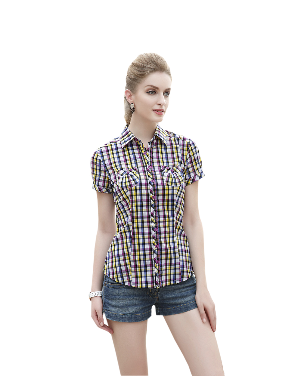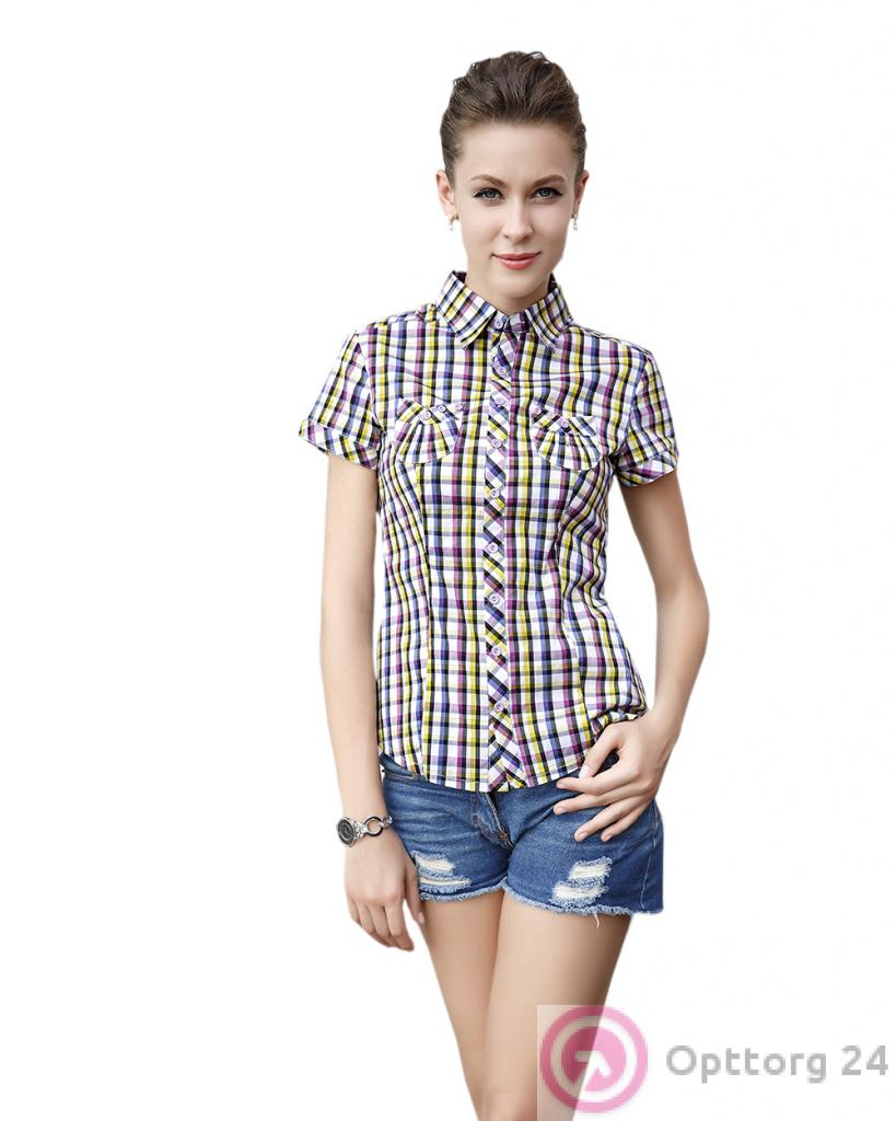 Женская клетчатая рубашка с коротким рукавом. Приятный к телу материал, лаконичная расцветка и удобные пуговицы непременно понравятся даже самым изысканным модницам.