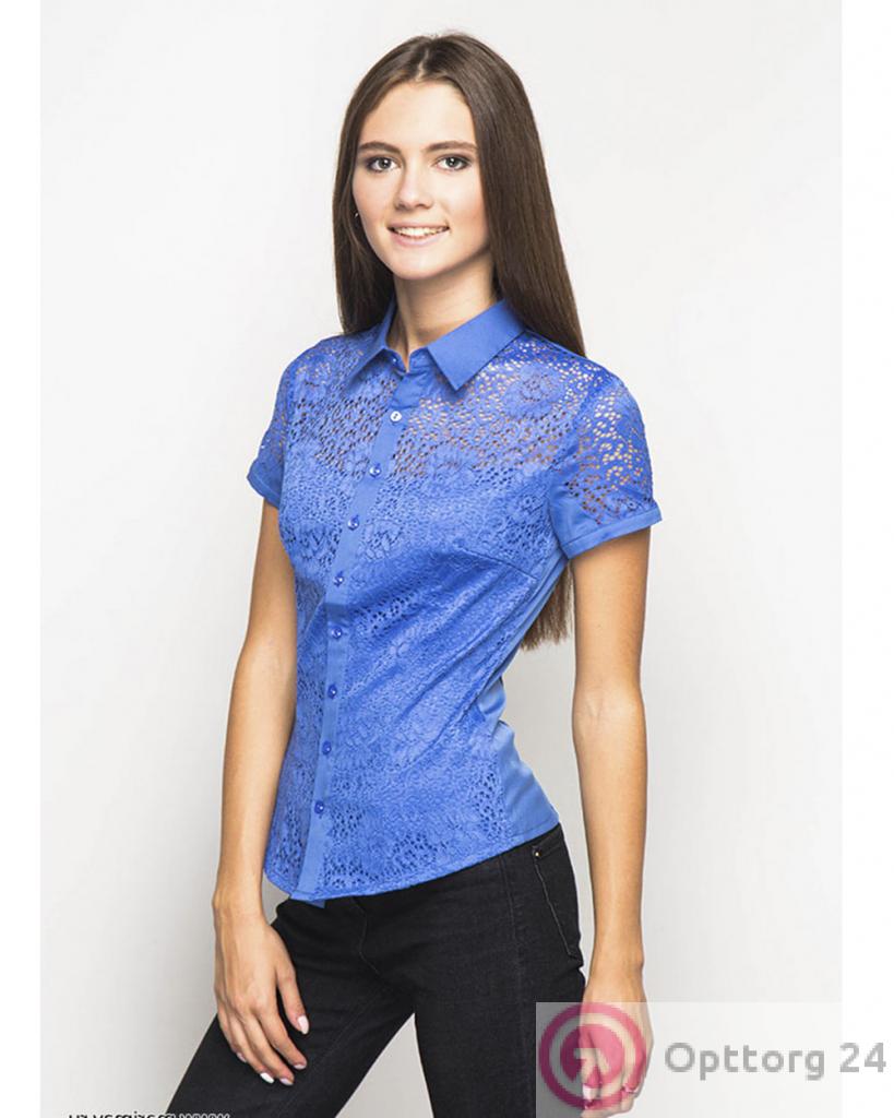 Блузка синего цвета с кружевом оптом