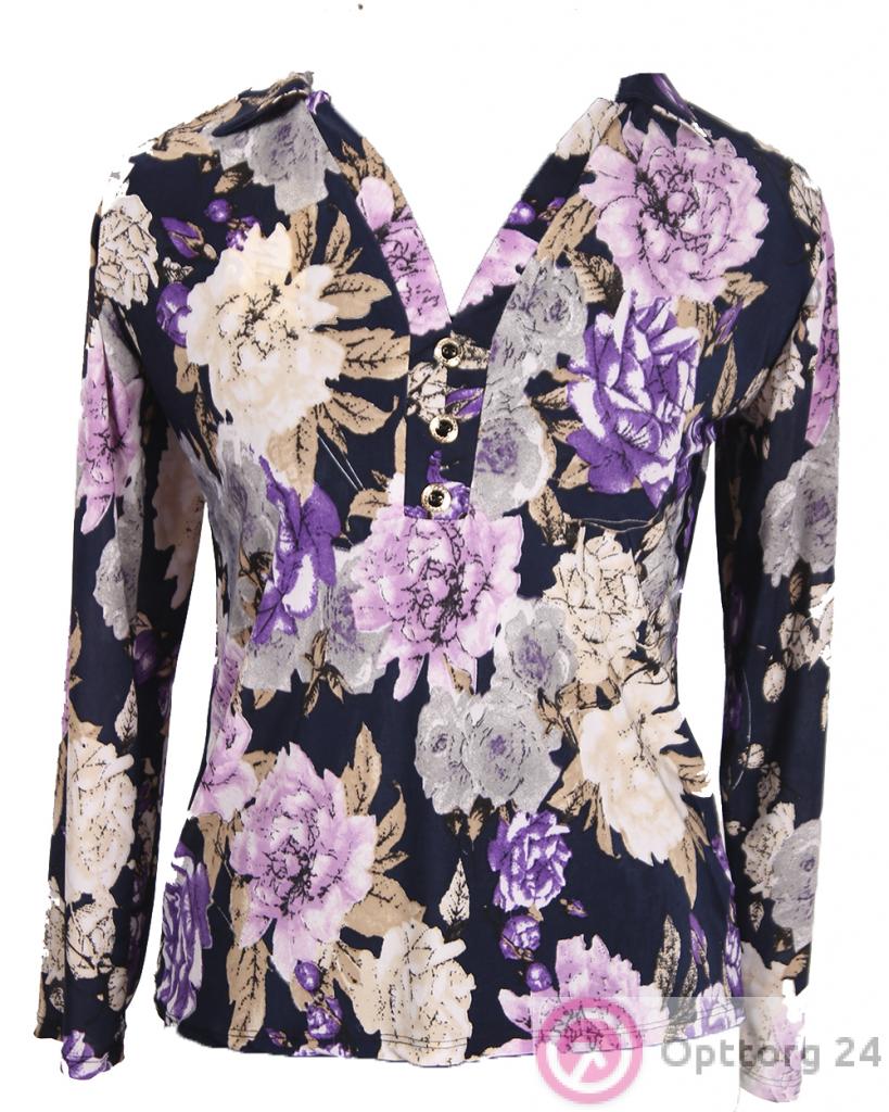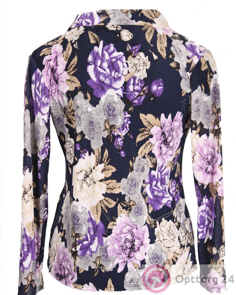 Женская, приятная блузка черного цвета с принтом в виде пышных цветов, идеально походит для вечернего похода по рестаранам, паркам. Хорошо сочитается с брюками и юбкой.