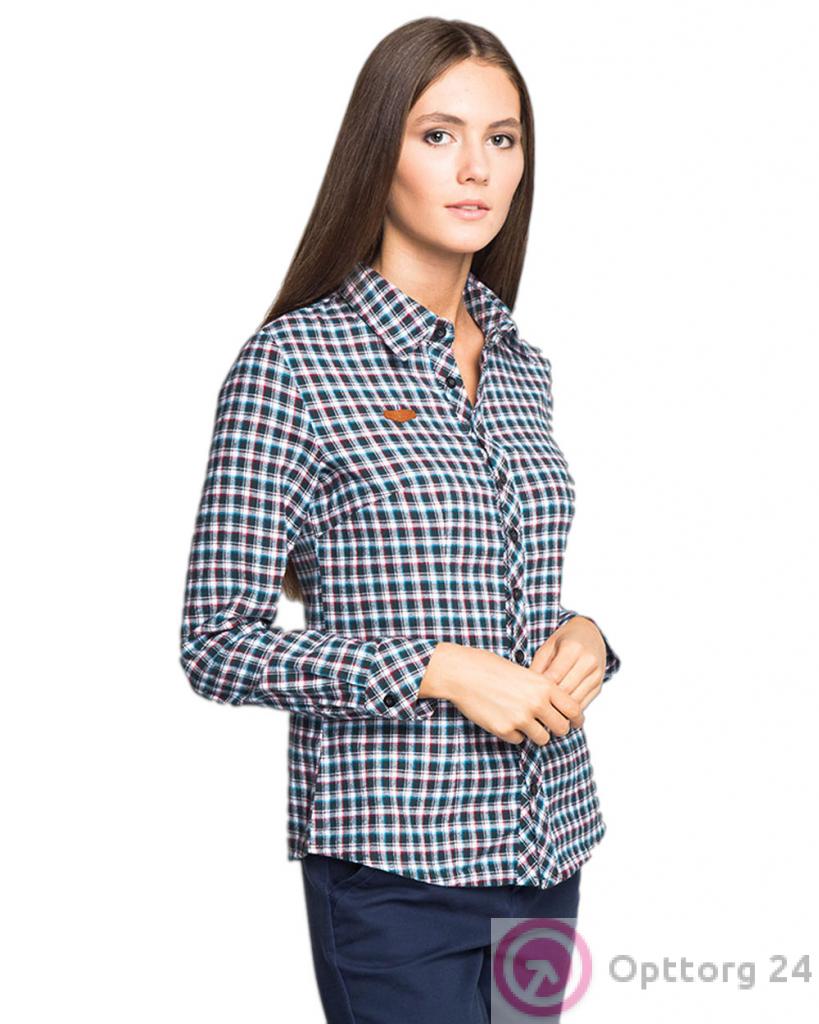 Блузка женская байковая с разноцветным принтом "клетка" оптом