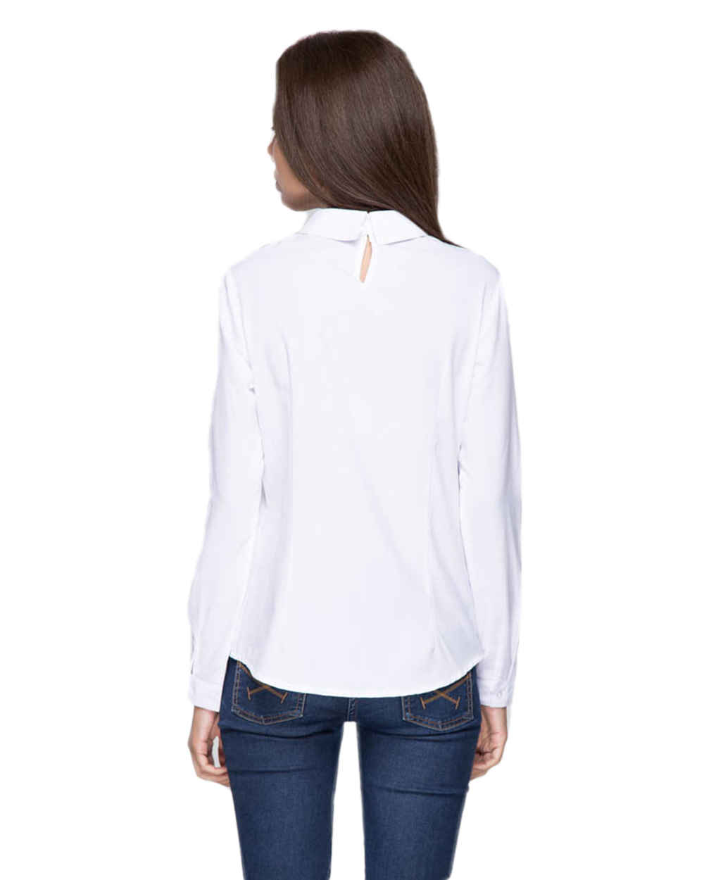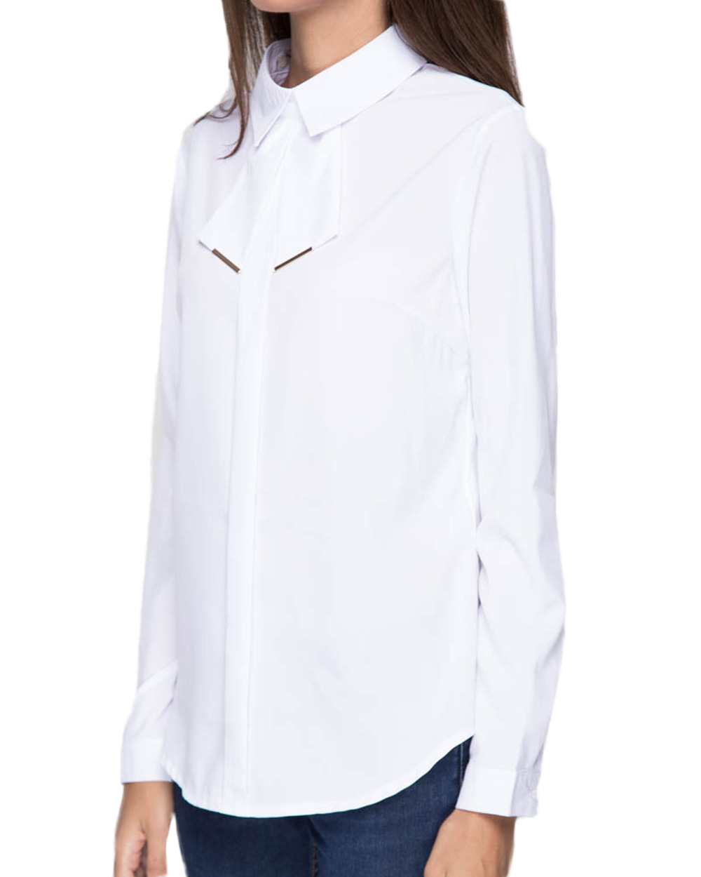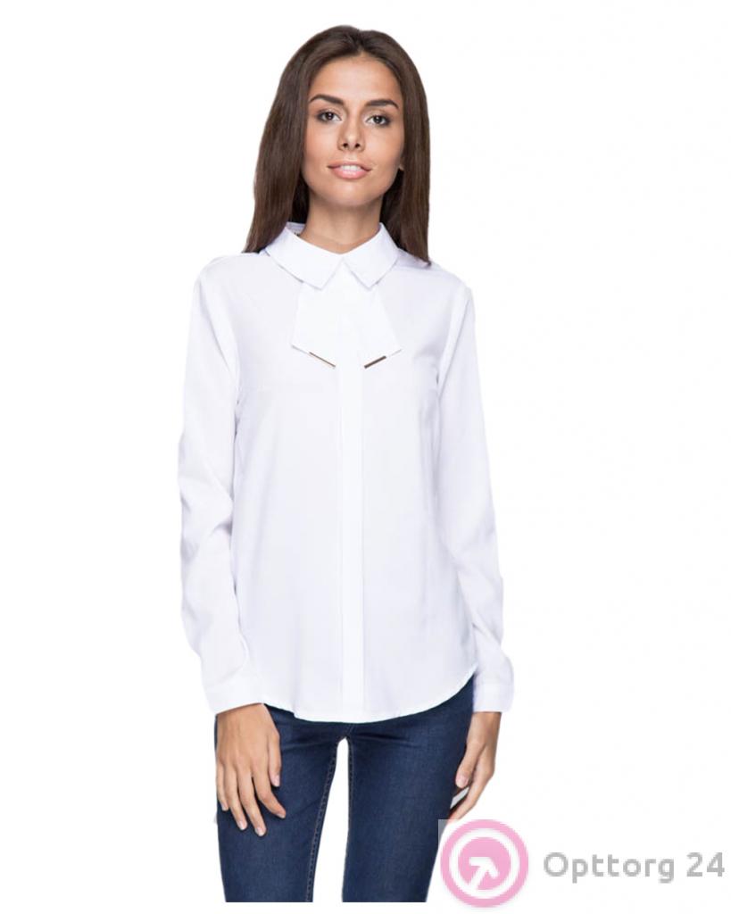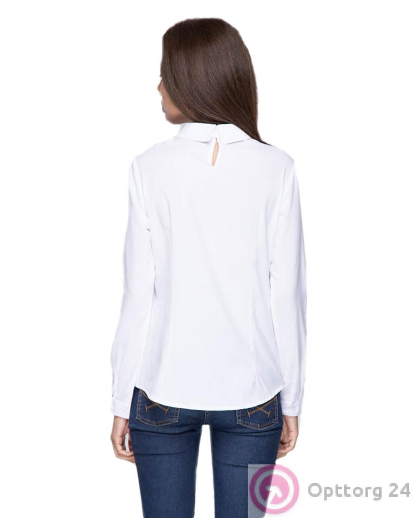 Легкая белая блузка из струящейся ткани. Прямой крой, отложной воротник.