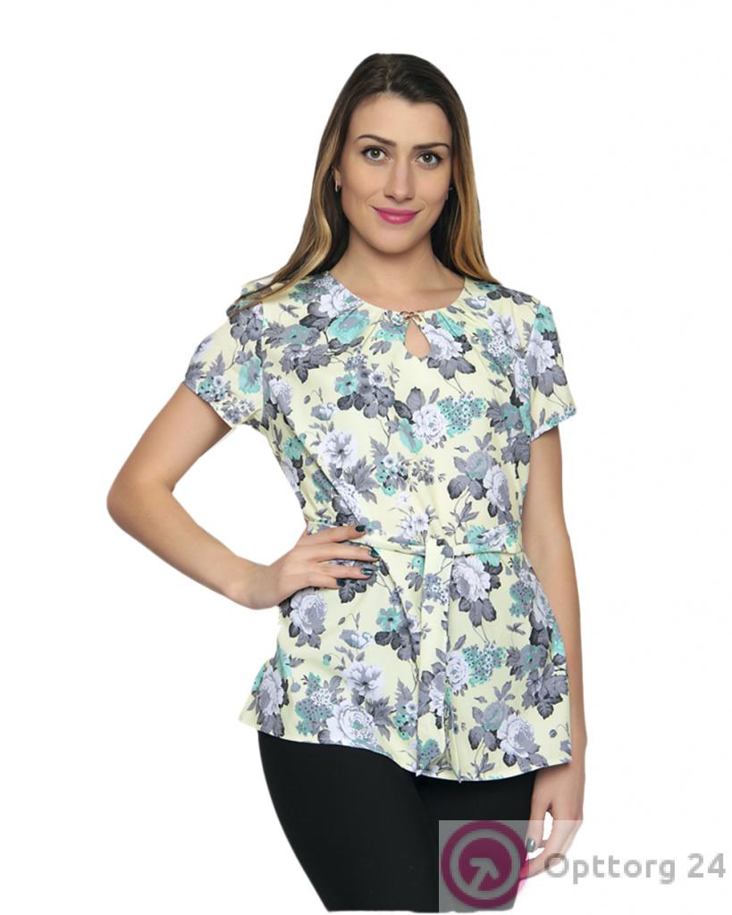 Блузка женская белая с цветочным принтом оптом