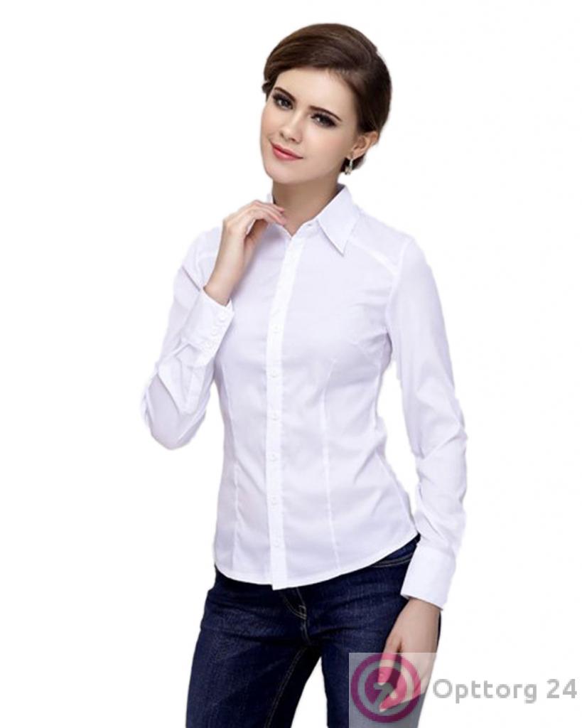 Блузка женская белая с длинным рукавом, классический крой оптом