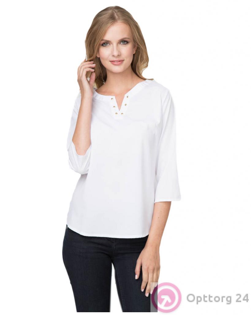 Блузка женская белая с клепками оптом