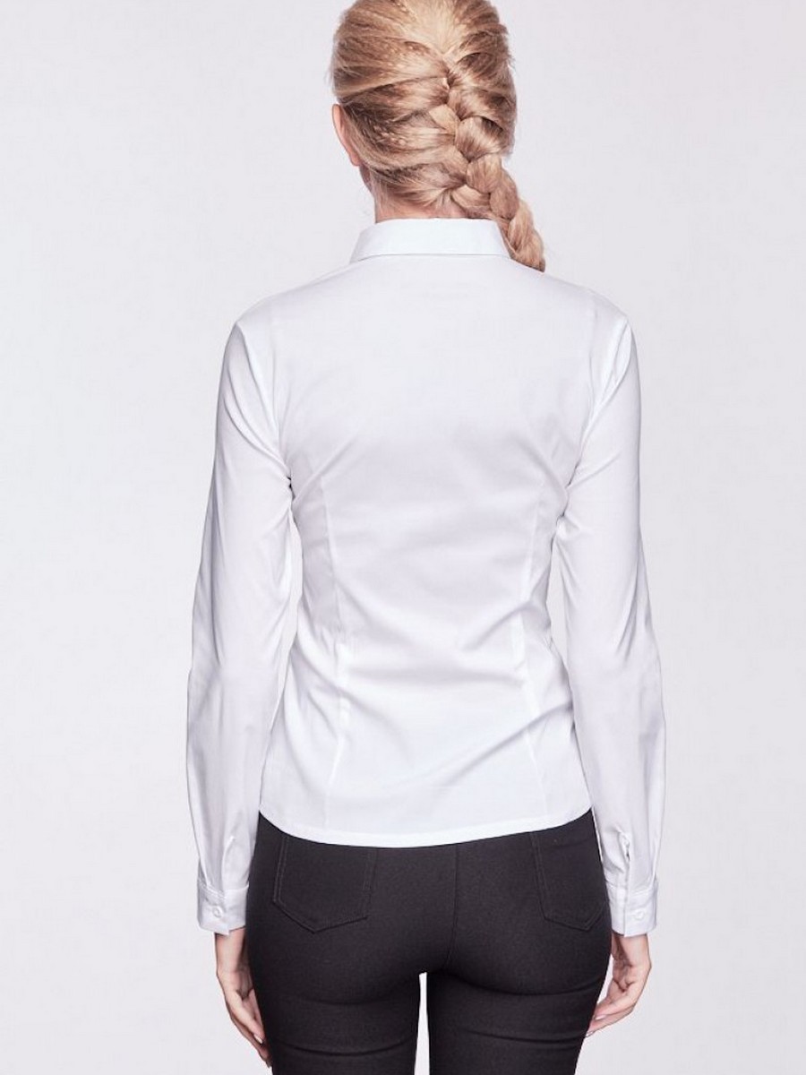 Блузка для девушек белая классическая с нашивкой оптом