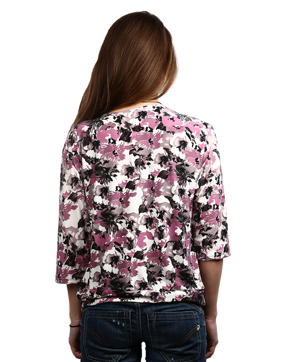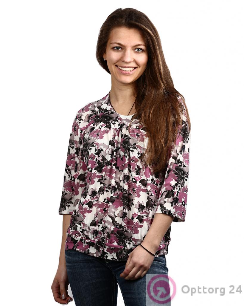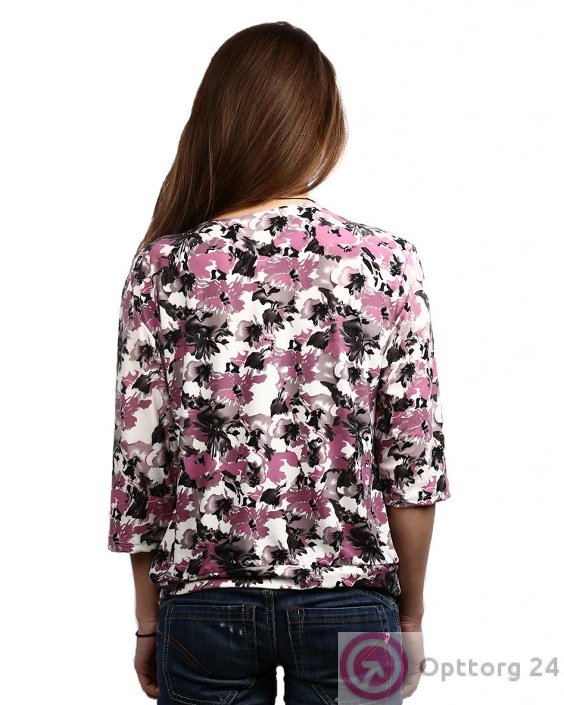 Блузка женская бело-розового цвета с цветочным принтом оптом