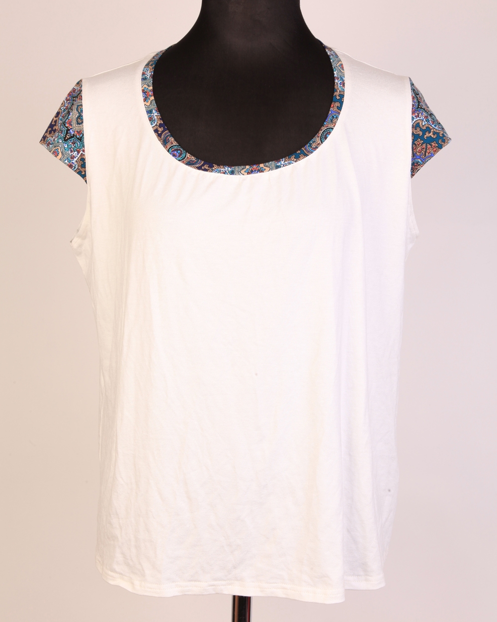 Эта аккуратная и нежная блузка, с укороченными рукавами, благодаря своему свободному покрою прекрасно подойдет любой. Вставки с цветочным орнаментом добавляют оригинальной игривости.