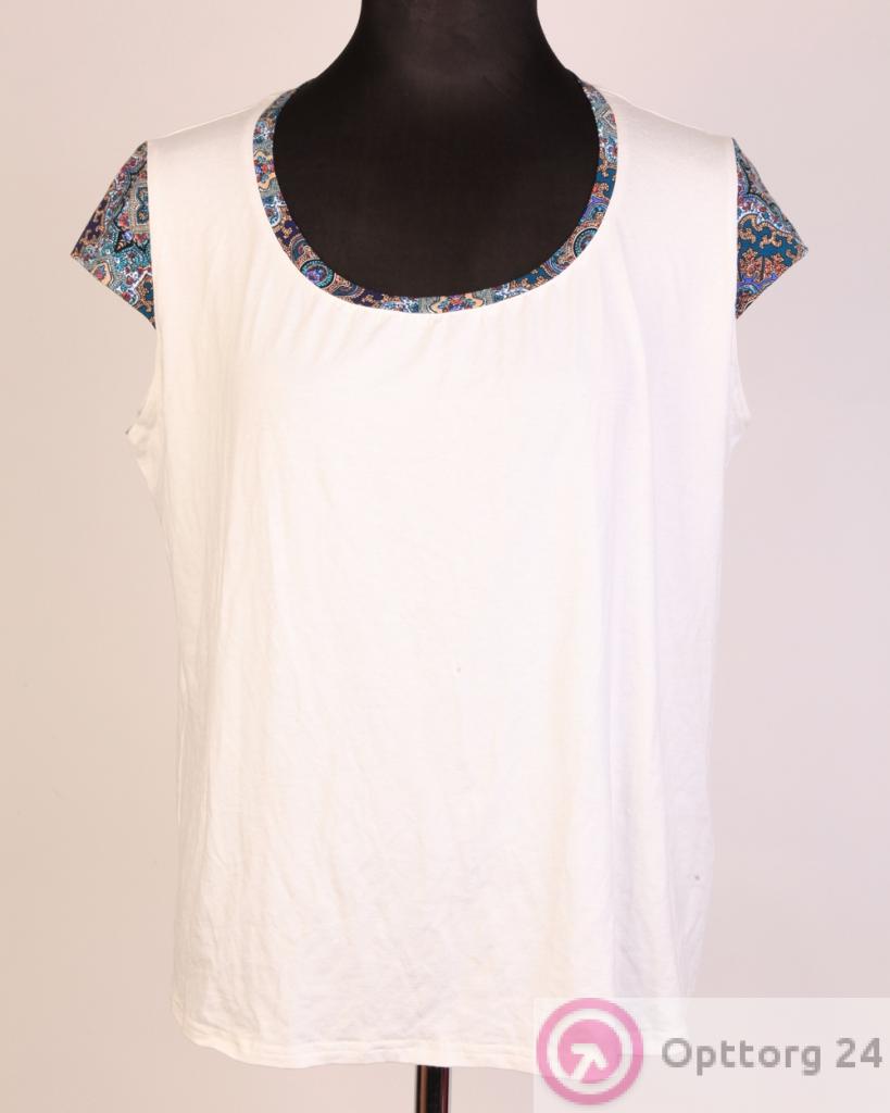 Блузка женская без рукавов белая с яркой отделкой оптом