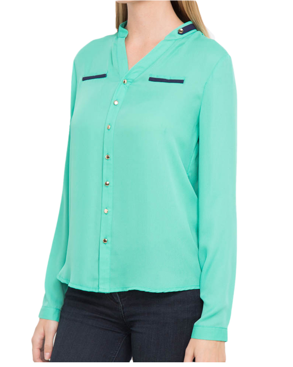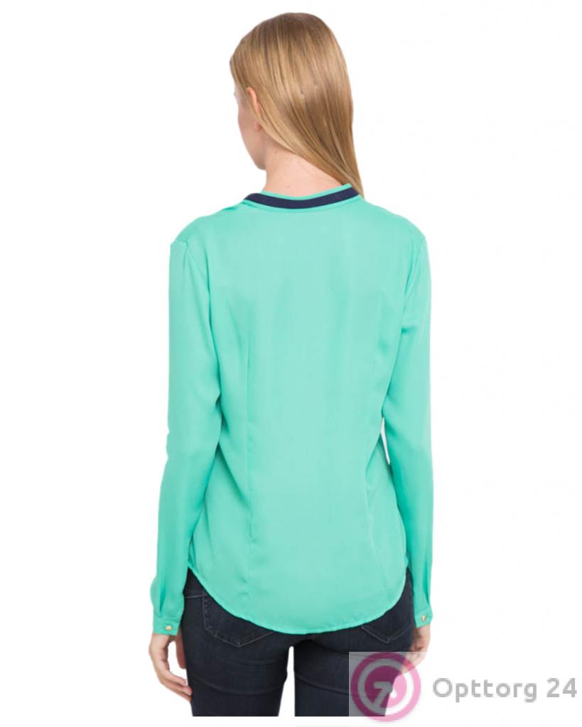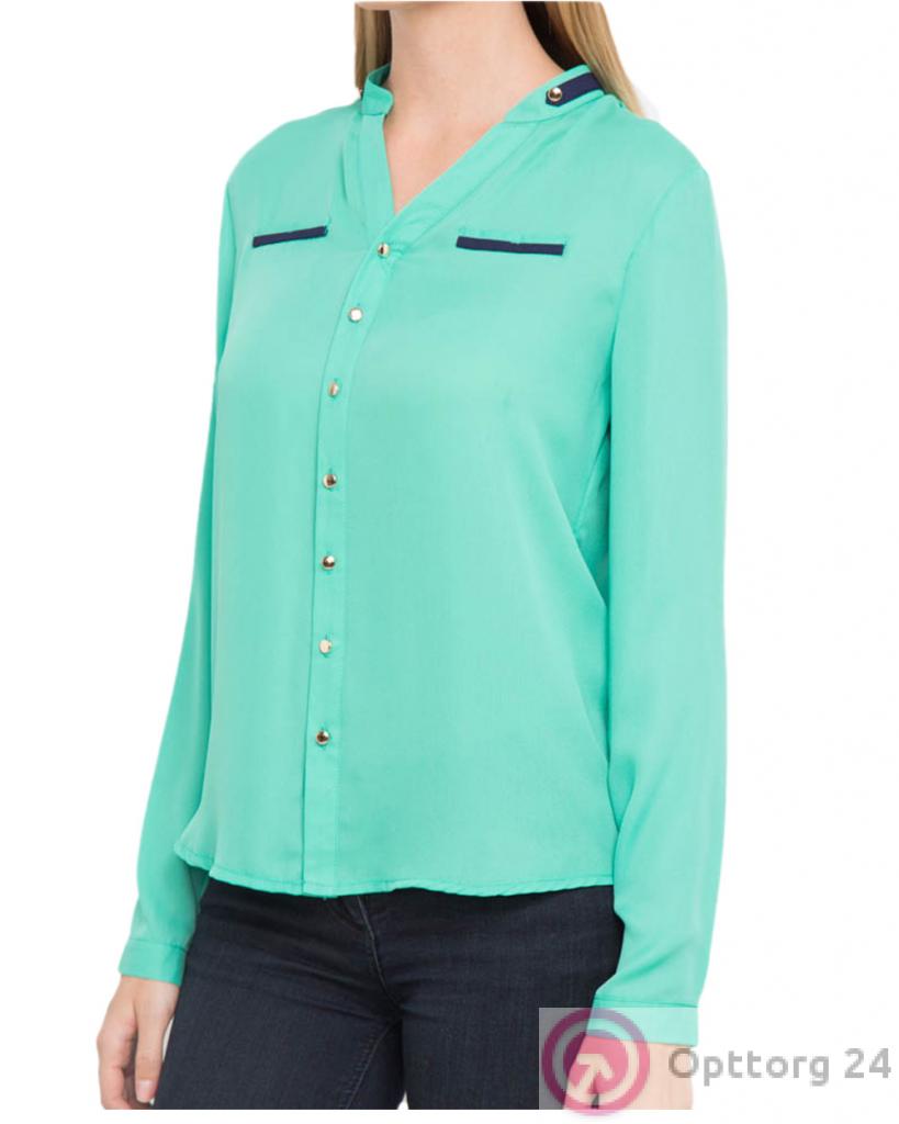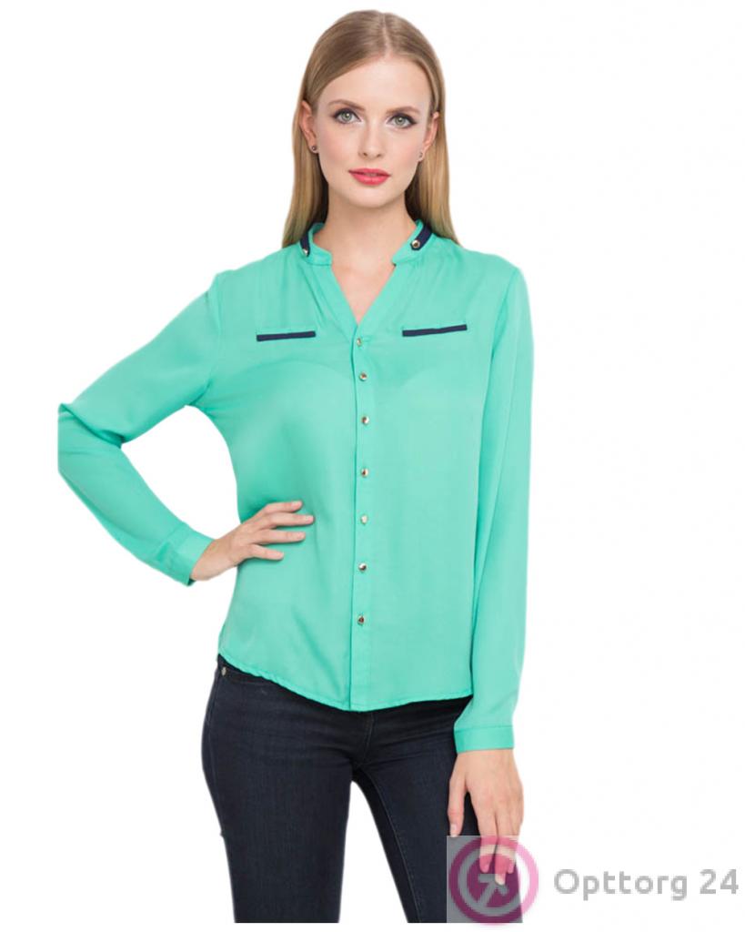 Блузка женская бирюзовая с полосками на воротнике оптом