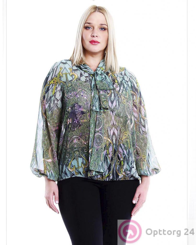 Женская цветная блузка с элегантным бантом на воротнике. Хорошо сочитается с брюками и туфлями.