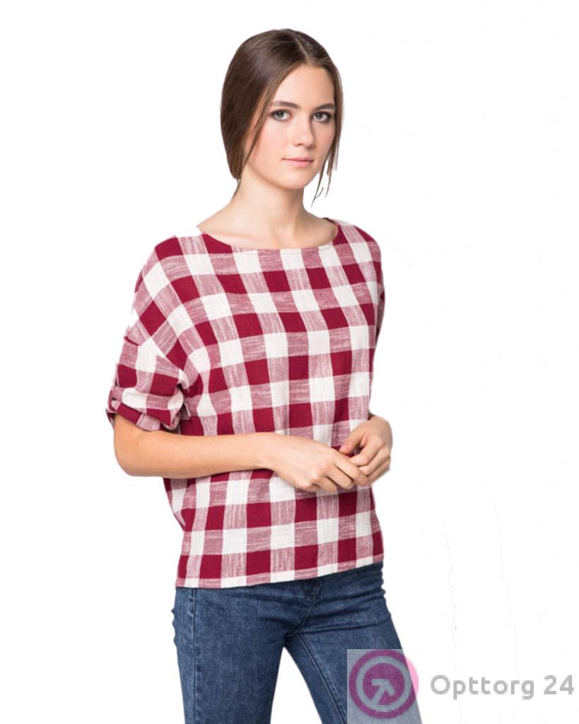 Блузка женская клетчатая бордовая с рукавом 3/4 оптом