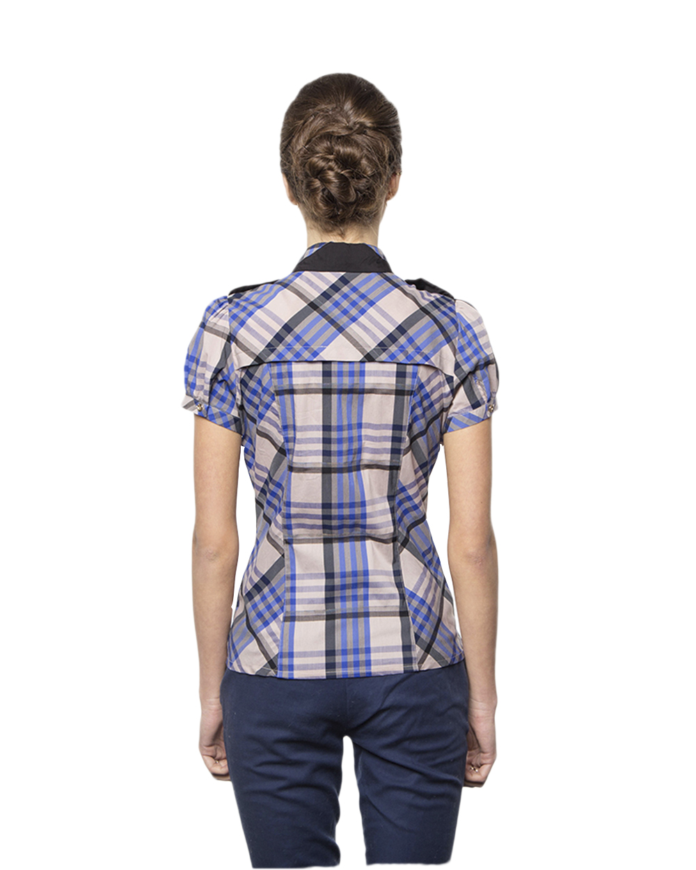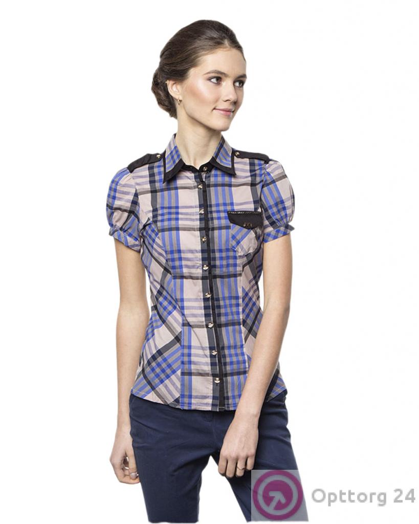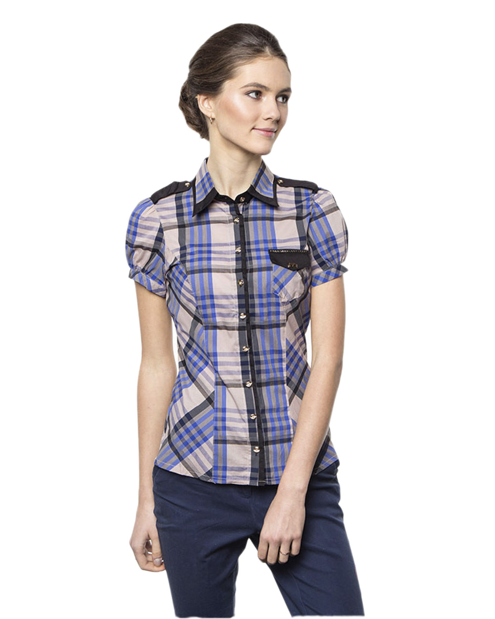 Блузка клетчатая с застежкой на пуговицы. Модель имеет рукава-фонарики.
