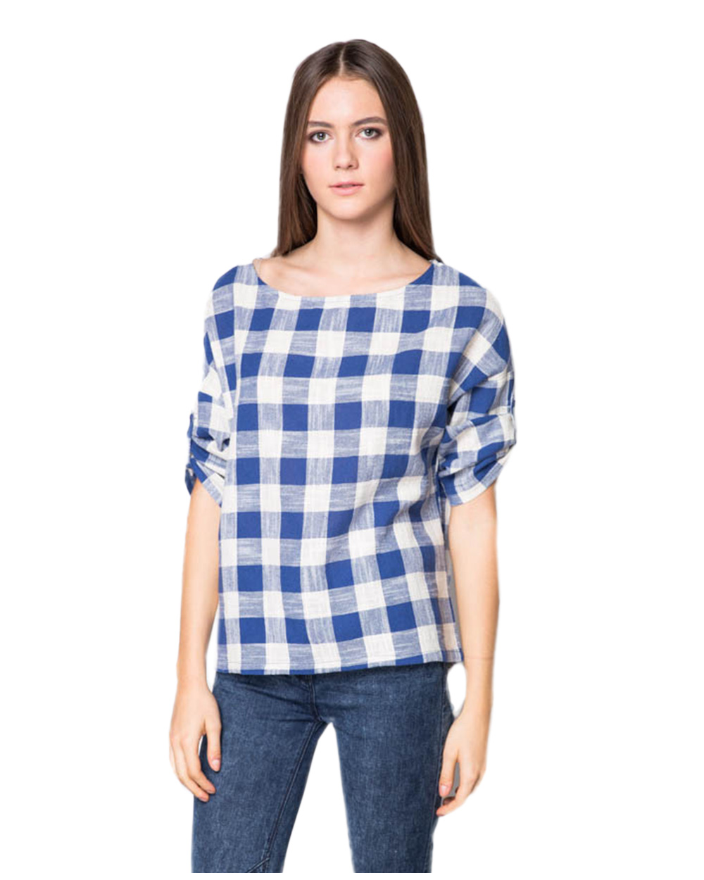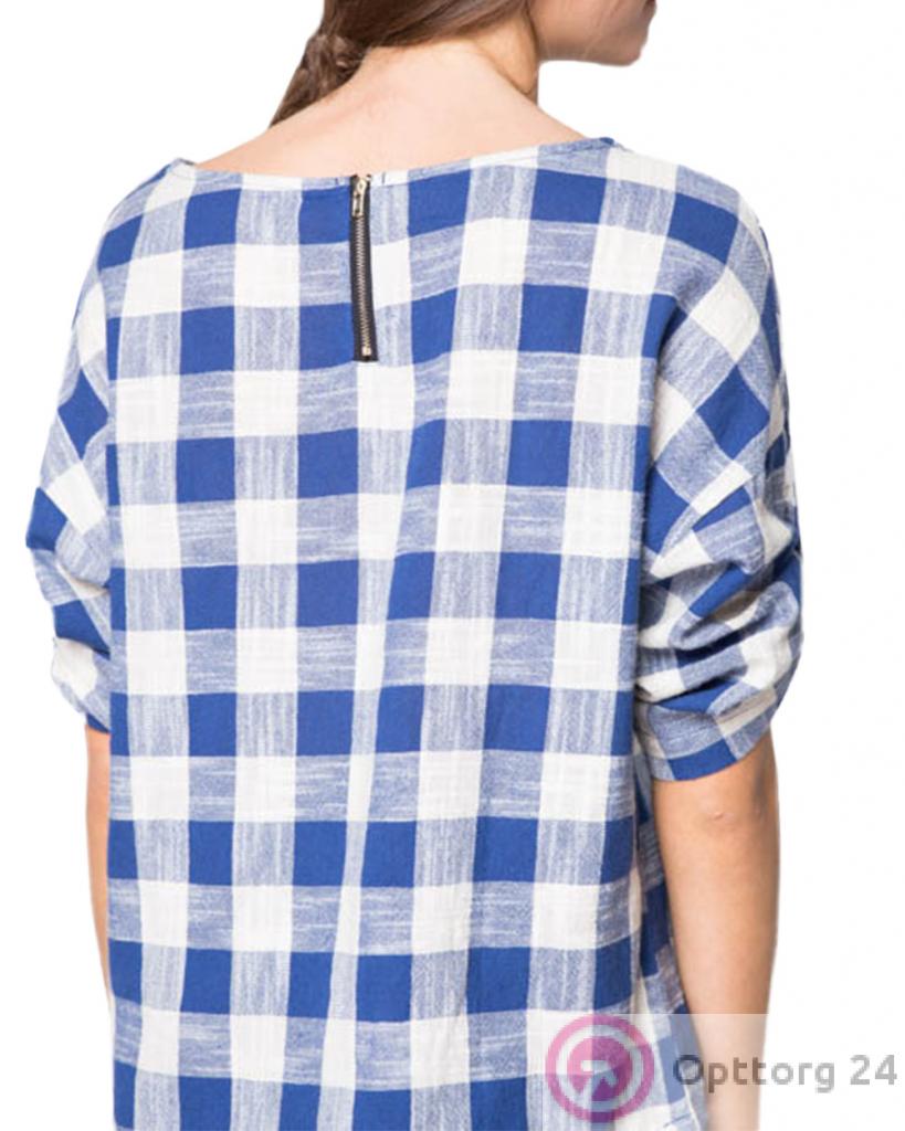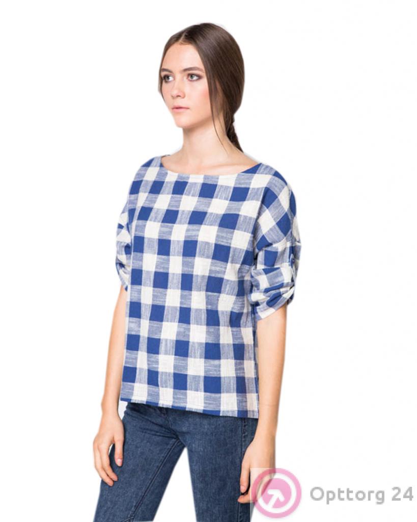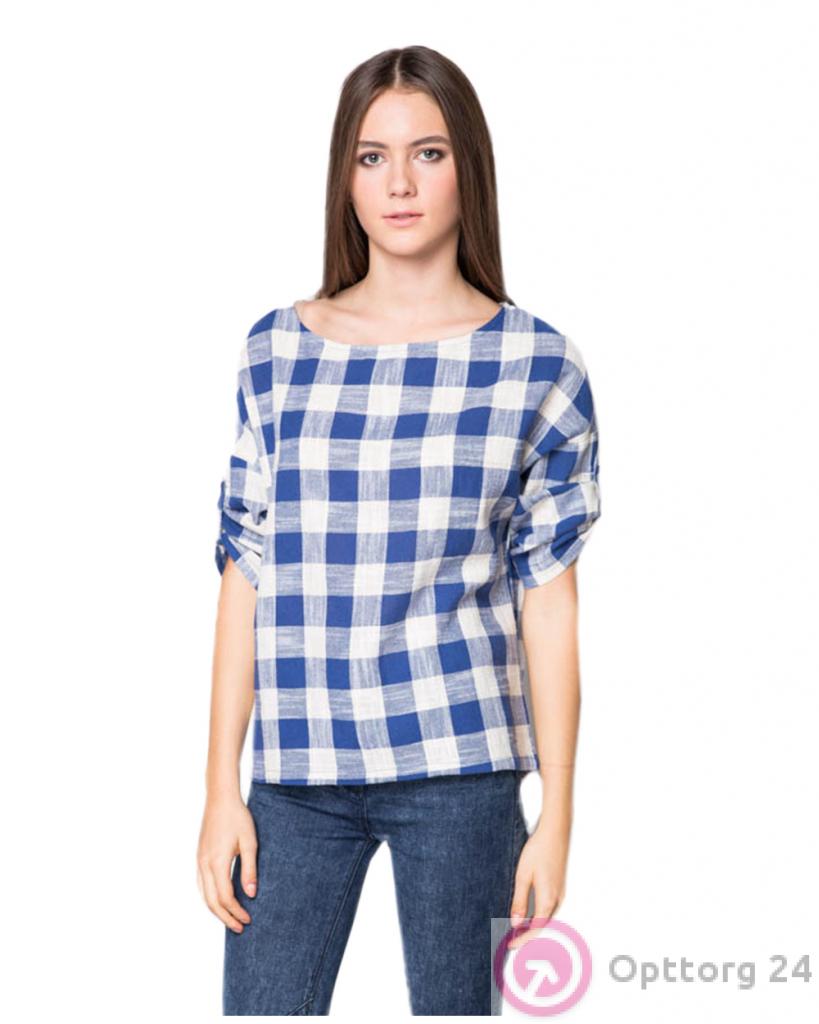 Блузка женская клетчатая синяя с рукавом 3/4 оптом