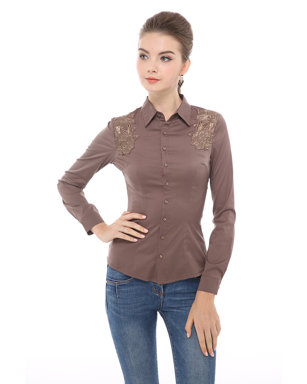 Классическая модель женской блузки, приталенная, рукав длинный. Изделие выполнено из качественного материала, очень приятного на ощупь. Плечи украшены красивыми вышитыми аппликациями в виде цветов. Отлично дополнит гардероб любой девушки.